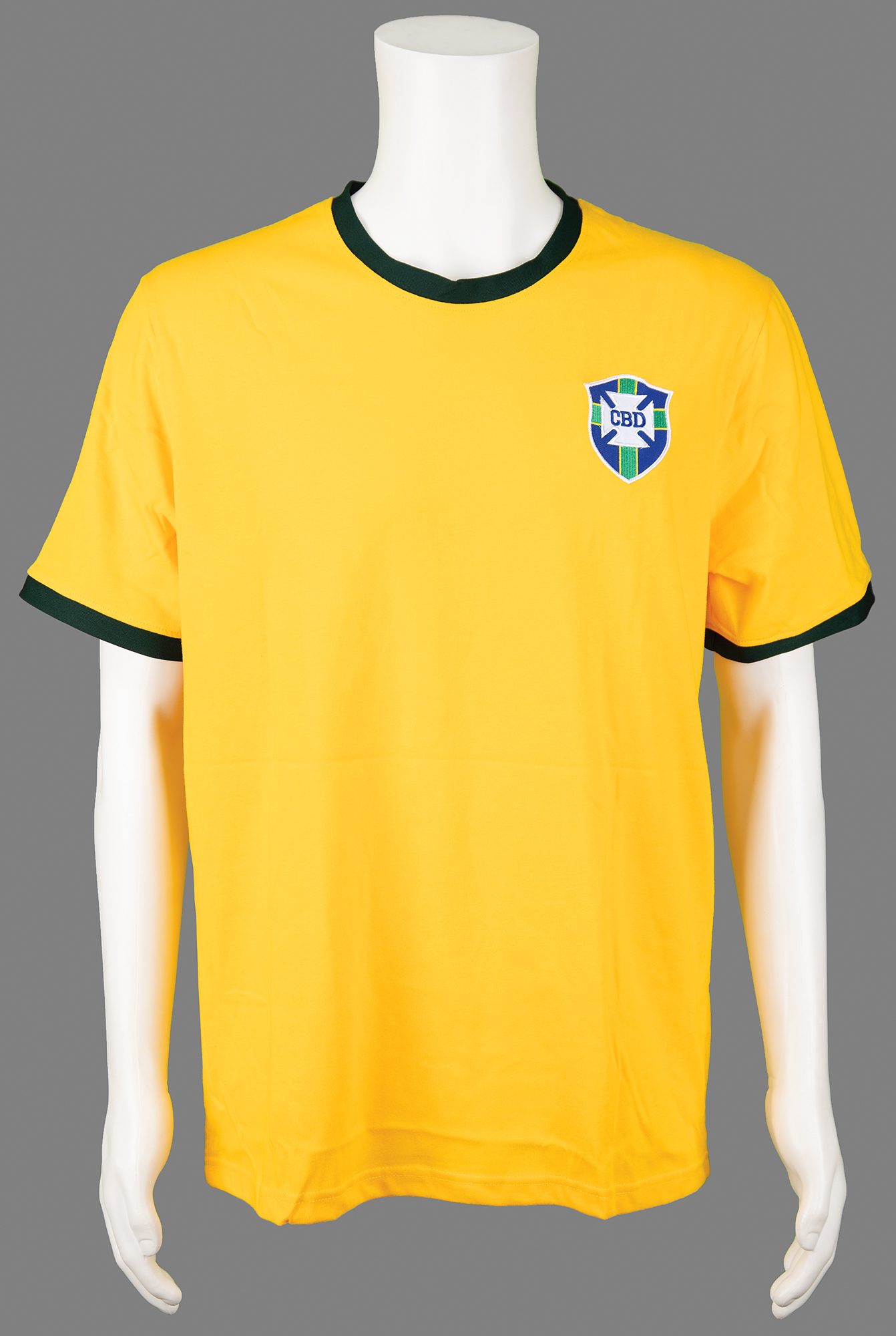 Replica CBD Brazil Pele soccer jersey, signed on the number on the back in silver ink by Pele. In very fine condition, with a PSA/DNA label affixed to the number. Accompanied by a certificate of authenticity from PSA/DNA.