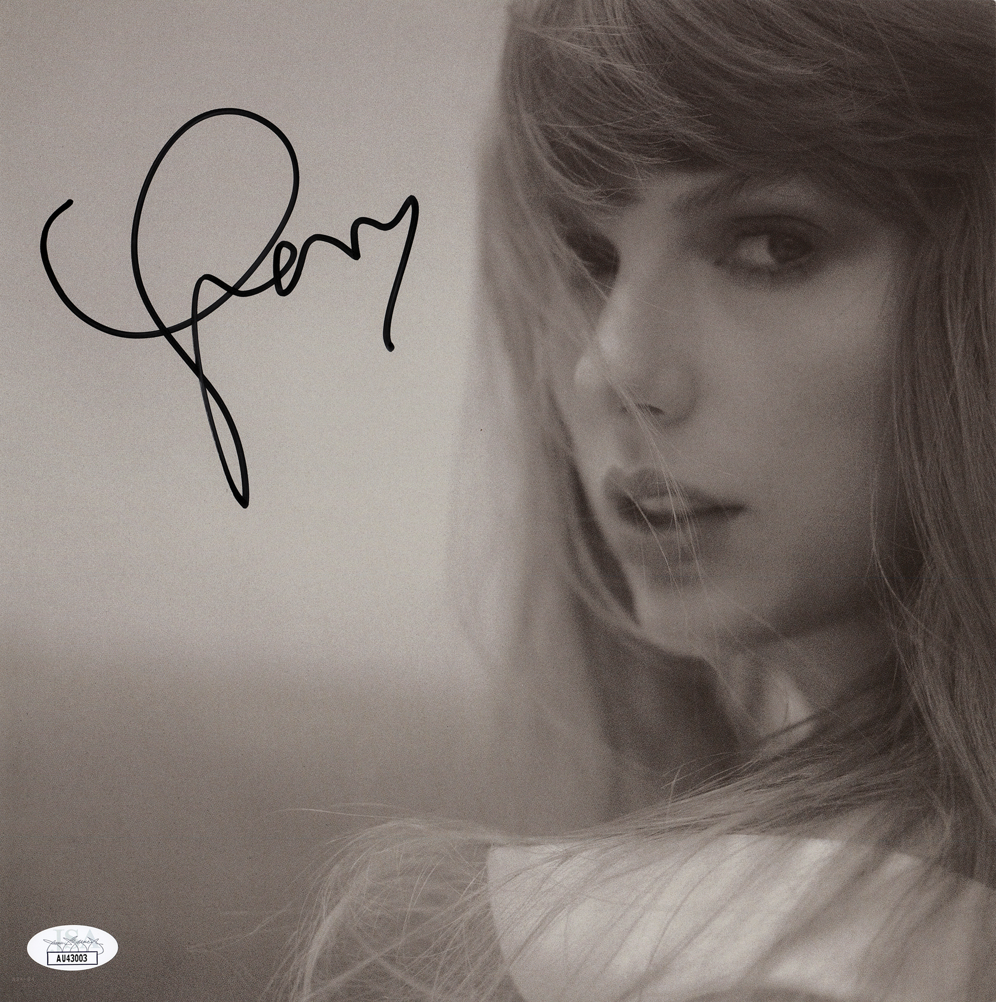 Attractive 11 x 11 insert print from Taylor Swift's best-selling album The Tortured Poets Department, prominently signed in black felt tip. In very fine condition, with a JSA label affixed to the lower corner. Accompanied by a certificate of authenticity from JSA.