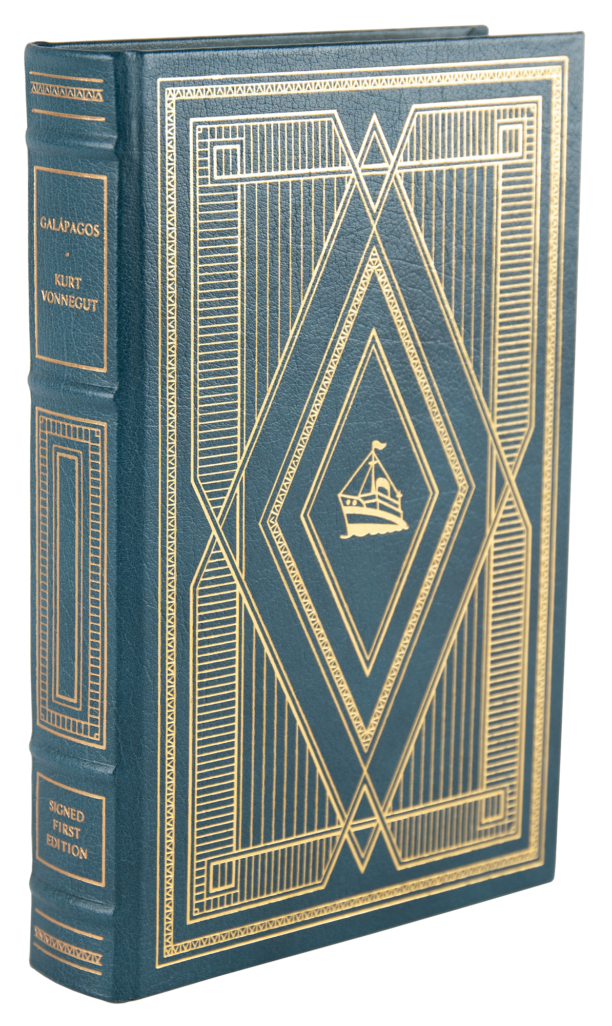 Signed book: Galapagos. Limited first edition. Franklin Center, PA: Franklin Library, 1985. Leatherbound hardcover, 6 x 9, 295 pages. Signed on a free end page in black ballpoint by Kurt Vonnegut. In very fine condition.