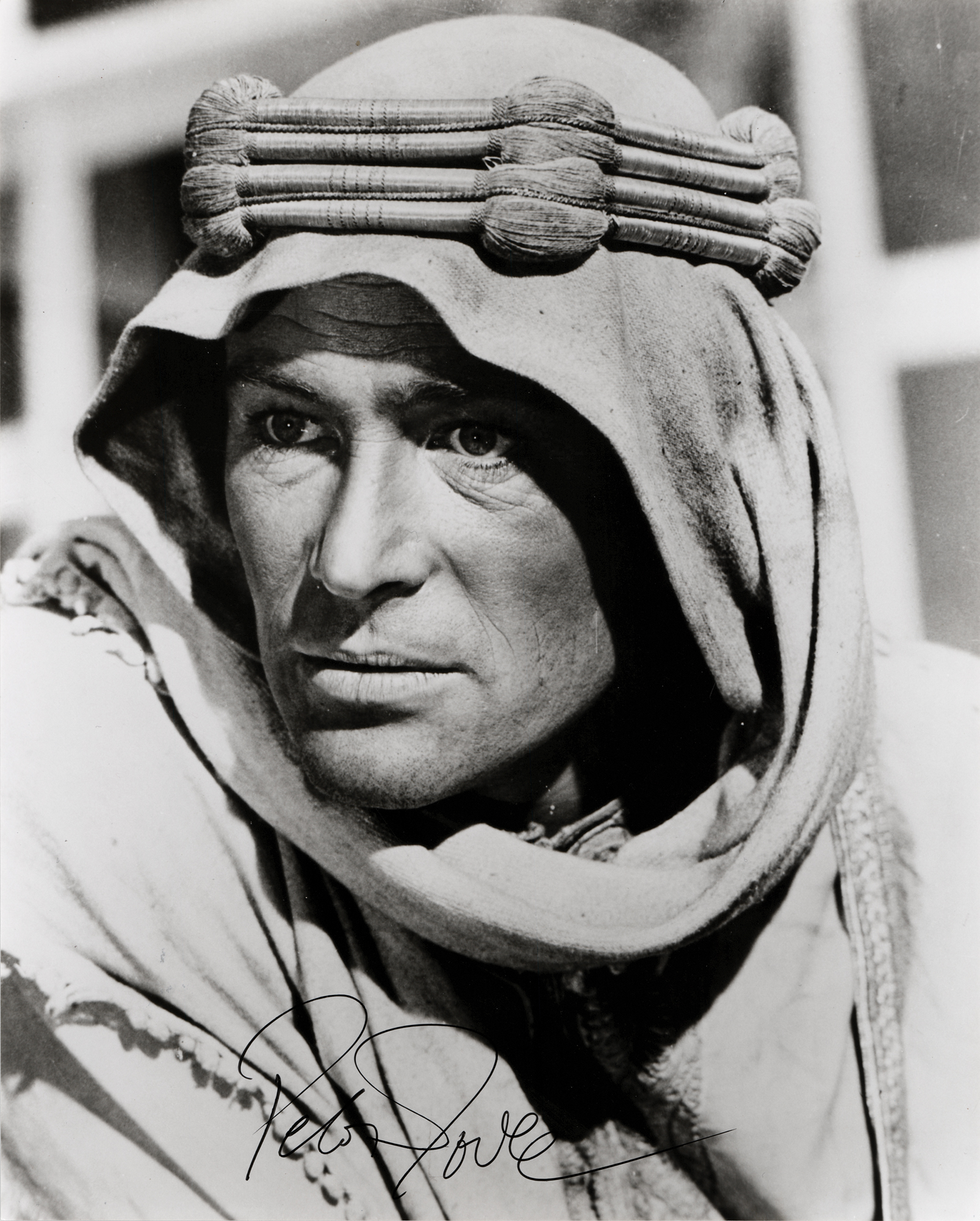 Sharp glossy 8 x 10 photo of Peter O'Toole as T. E. Lawrence in the epic adventure film Lawrence of Arabia, signed in black felt tip. In fine condition.