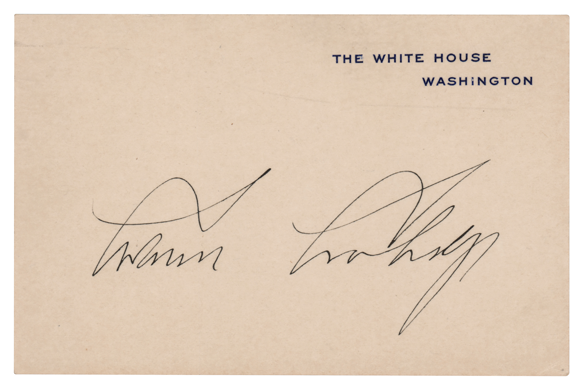White House card, 4.25 x 2.75, signed neatly in ink by Calvin Coolidge. In fine condition.