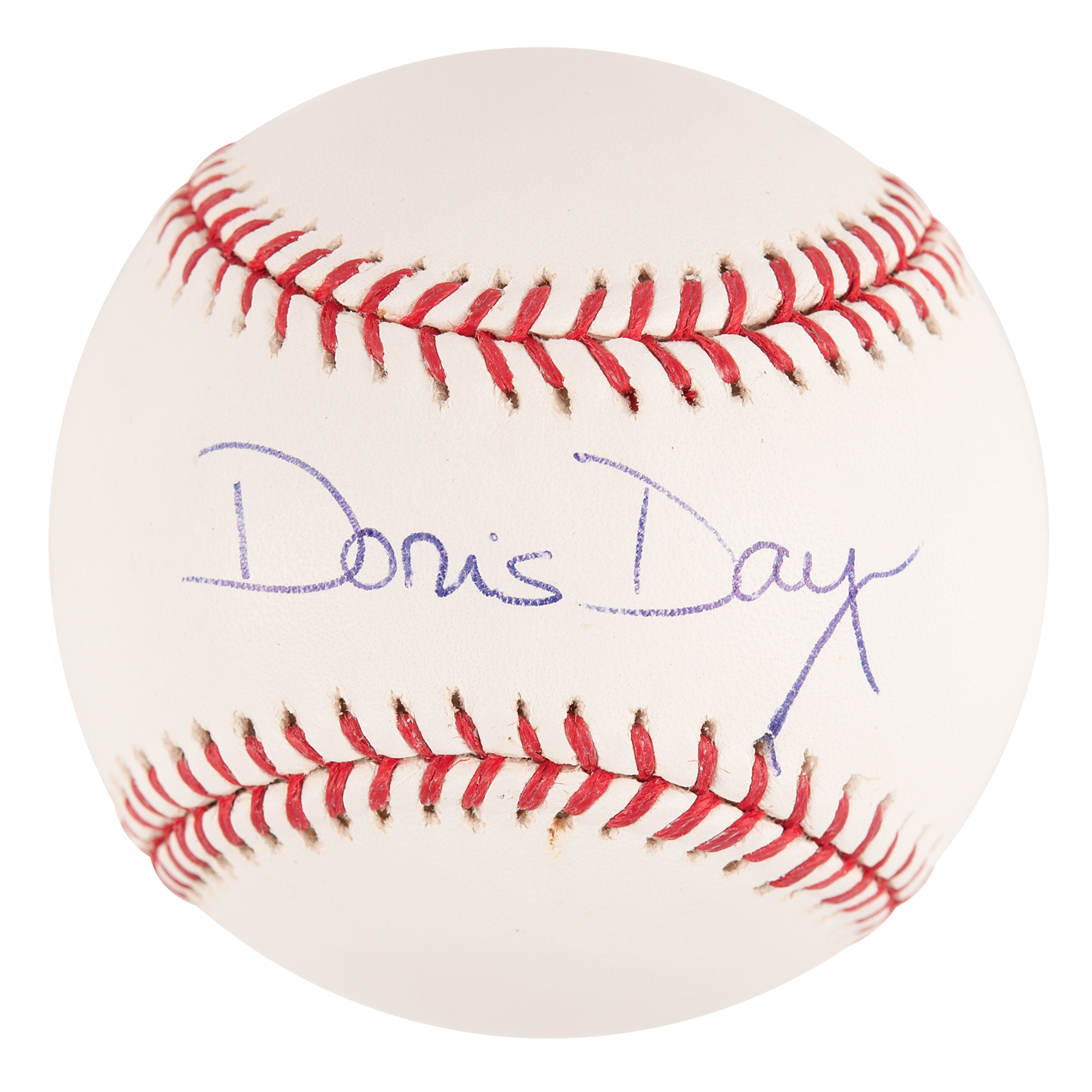 Official Rawlings Major League (Selig) baseball signed in blue ballpoint on the sweet spot by actress and singer Doris Day. In fine condition, with a PSA/DNA label affixed to the rear. Accompanied by a certificate of authenticity from PSA/DNA.