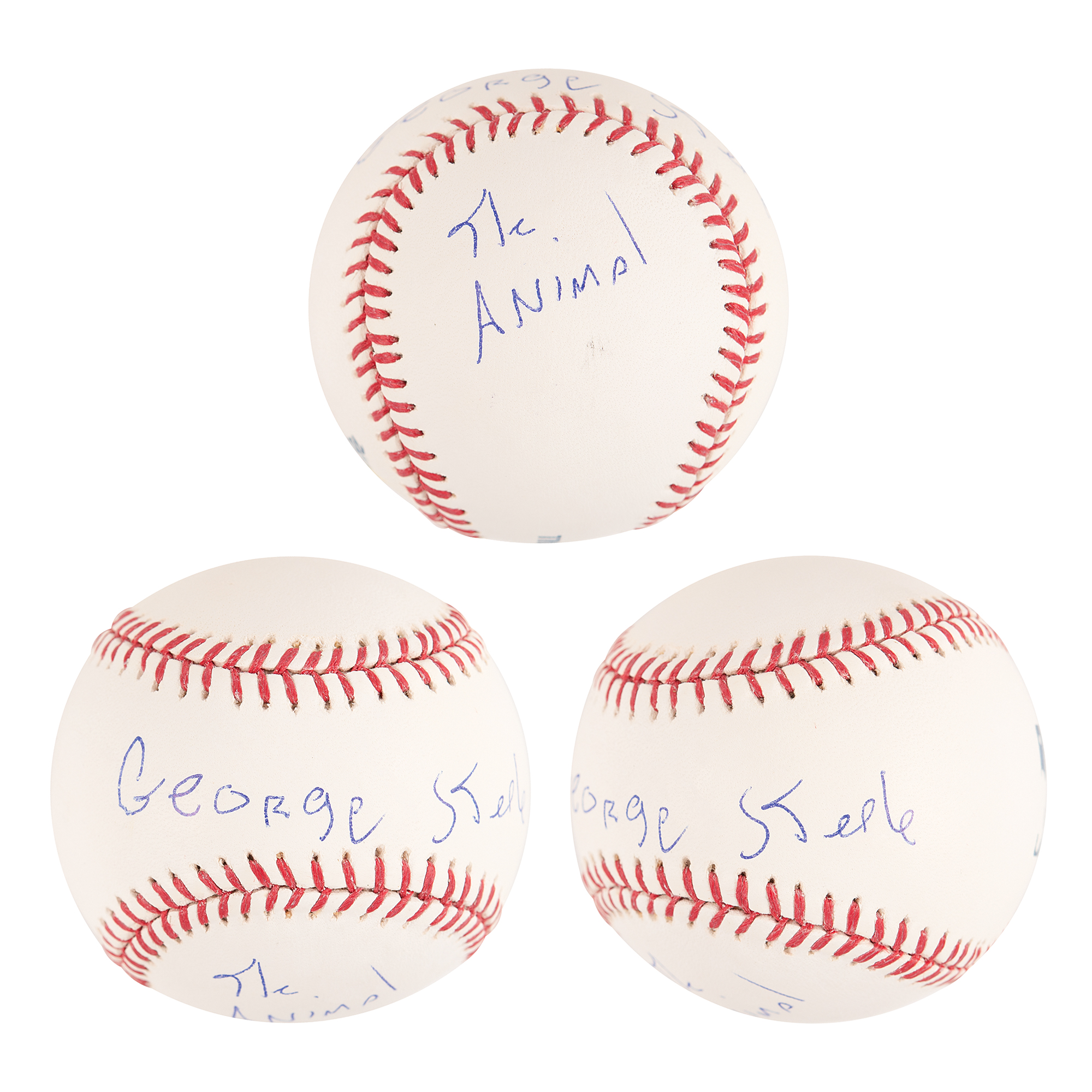 Official Rawlings Major League (Selig) baseball signed in blue ballpoint on the sweet spot by pro wrestler George Steele, adding his famous nickname, "The Animal," to the lower panel. In very fine condition, with a PSA/DNA label affixed to the rear. Accompanied by a certificate of authenticity from PSA/DNA.
