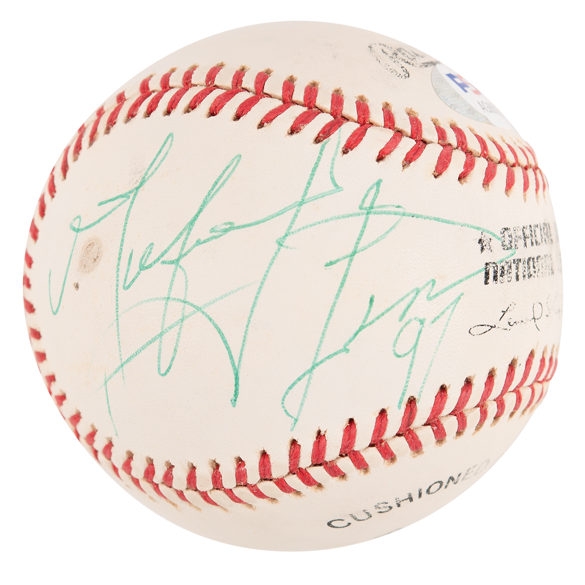 Official Rawlings National League (Coleman) baseball signed in green ballpoint on a side panel, "Mel Gibson, 97." In very good to fine condition, with a small stain below the "M" and a PSA/DNA label affixed to the rear. Accompanied by a certificate of authenticity from PSA/DNA.