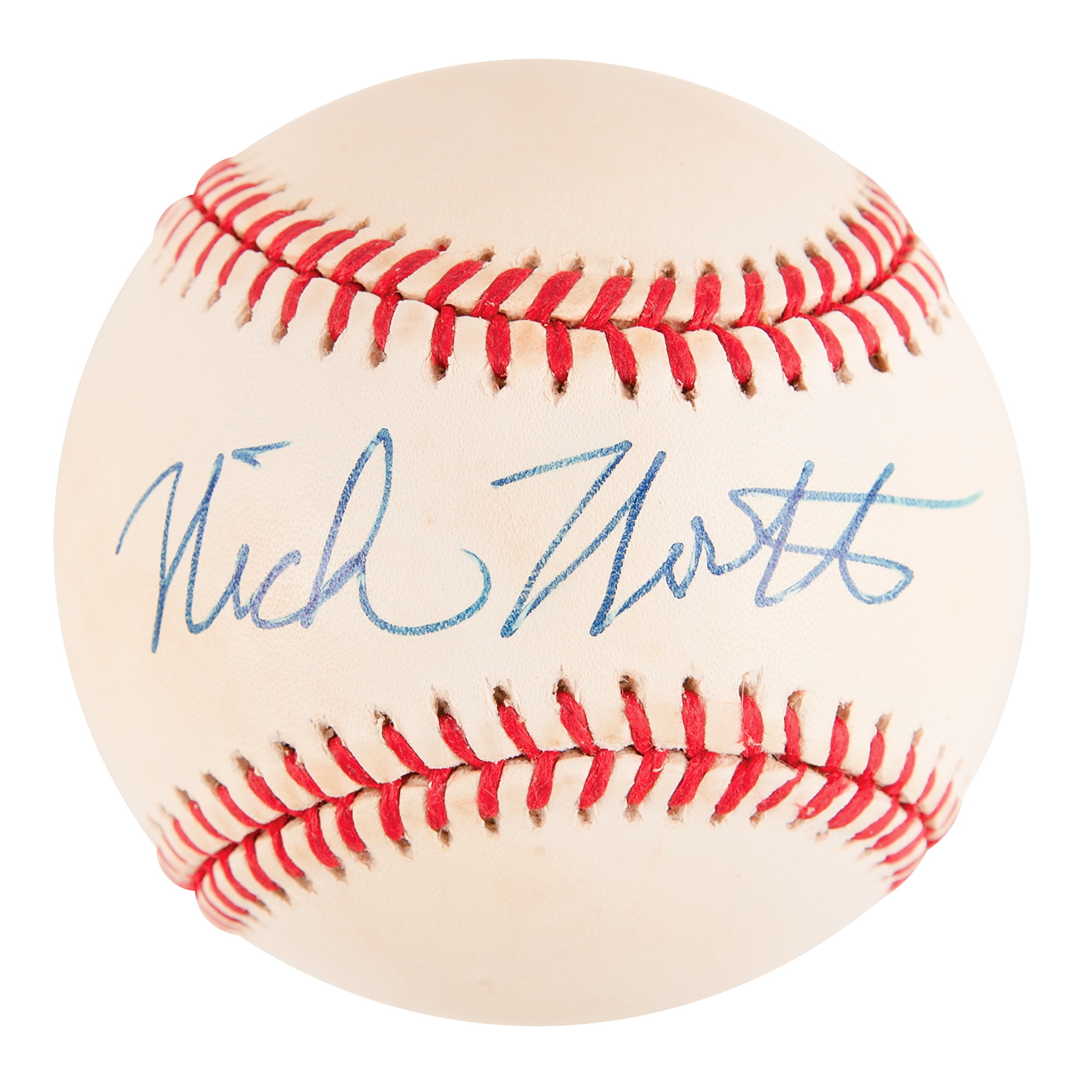 Official Rawlings American League (Budig) baseball signed in blue ballpoint on the sweet spot by actor Nick Nolte. In fine condition, with a Beckett label affixed to the rear. Accompanied by a certificate of authenticity from Beckett Authentication Services.