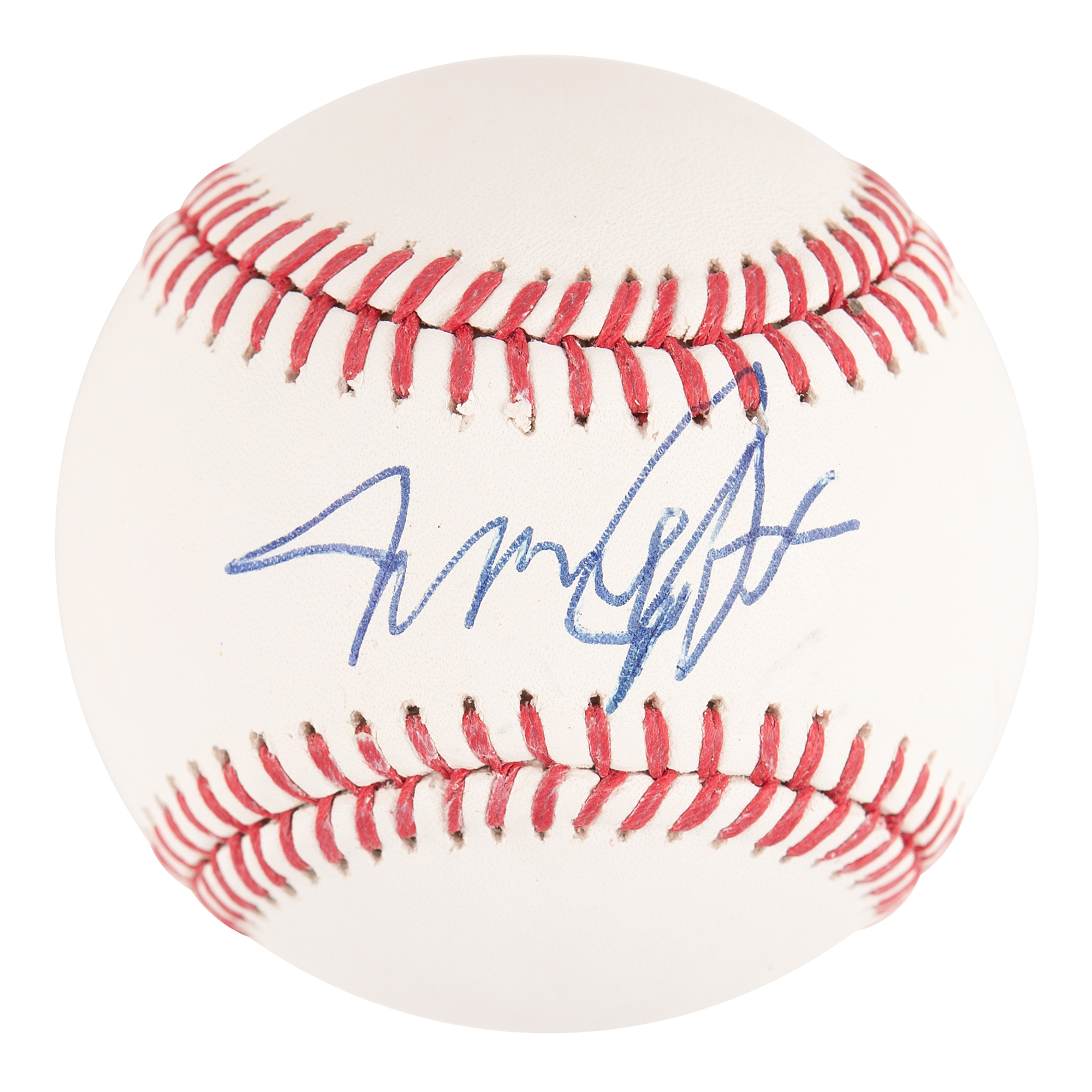 Official Rawlings Major League (Manfred) baseball signed in blue ballpoint on the sweet spot by Back to the Future star Michael J. Fox. In very fine condition, with a PSA/DNA label affixed to the rear. Accompanied by a certificate of authenticity from PSA/DNA.