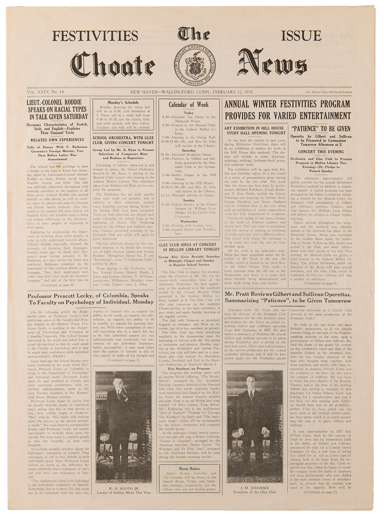 John F. Kennedy: 1935 Festivities Issue of The Choate News