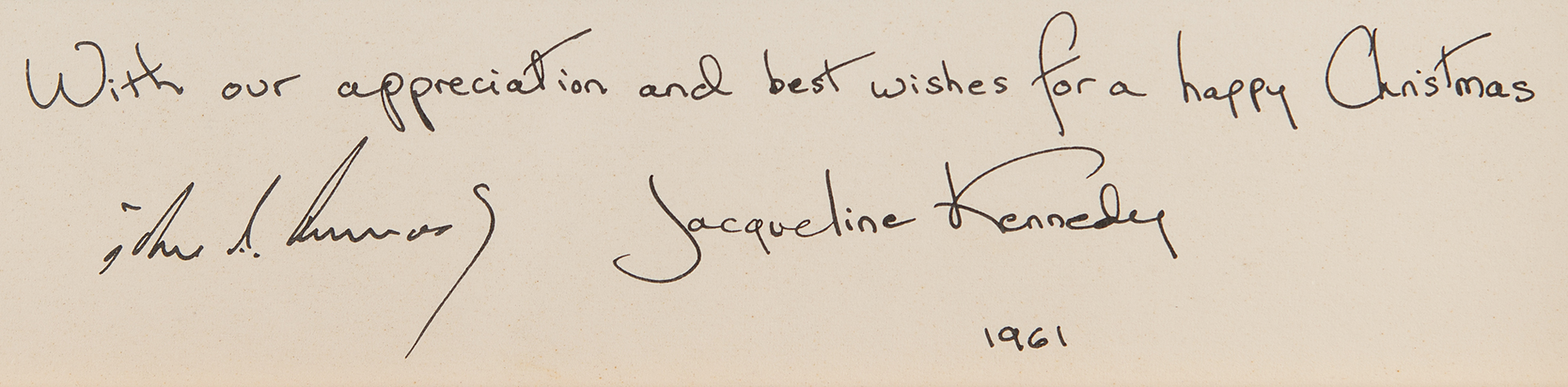 These historic official Kennedy White House Christmas gifts are discussed in detail in Mary Evans Seeley’s Season’s Greetings from the White House (pp. 87-95). Seeley reports that 'this Christmas remembrance was presented to some 1,000 White House executive and military employees at an informal reception on December 13, [1961].'
