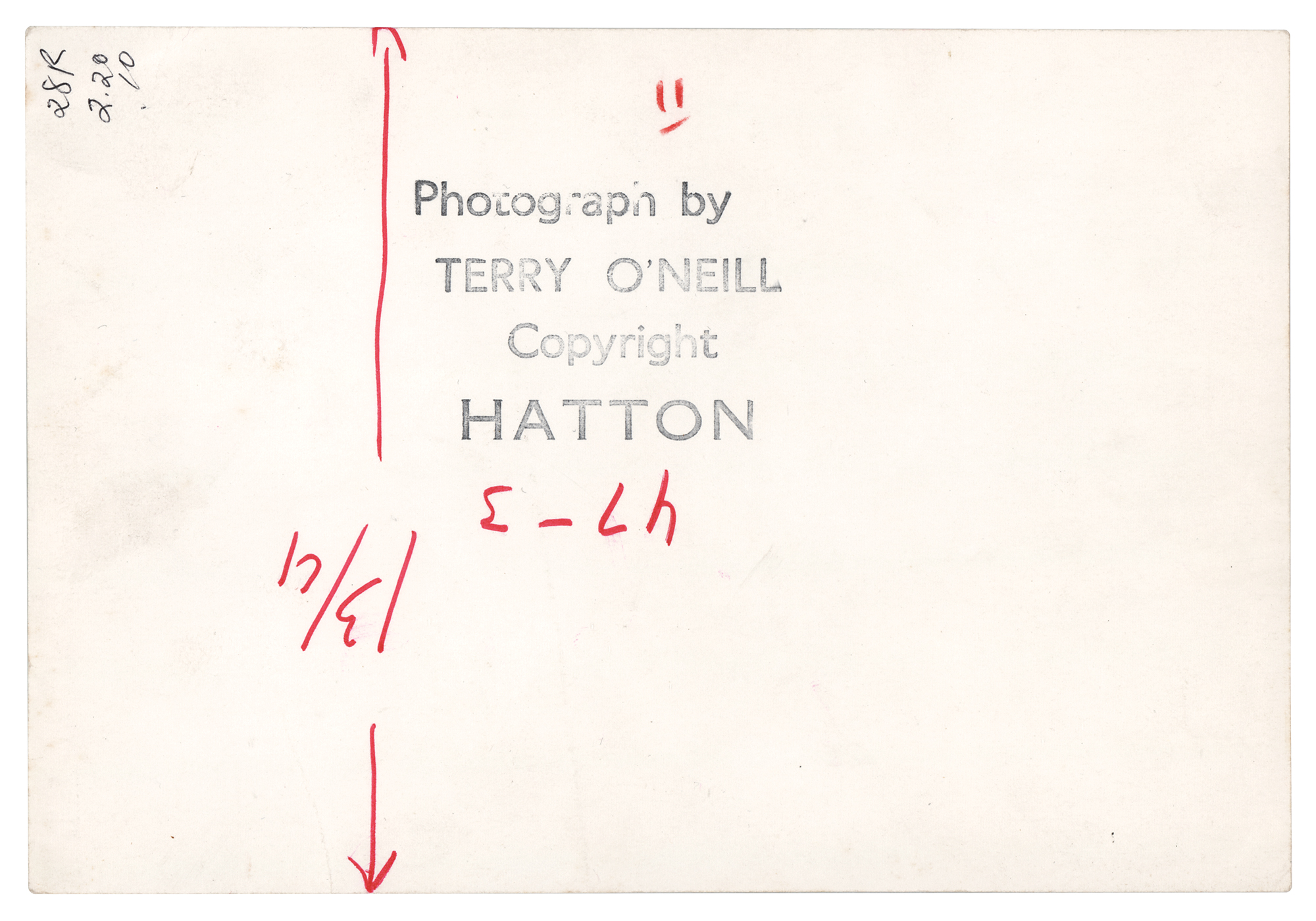 Vintage original 1960s glossy 9.25 x 6.25 silver gelatin photograph of the Rolling Stones taken by photographer Terry O’Neill, which depicts the band relaxing at the home of Stephen Stills in Laurel Canyon in California in October 1969, when the band was rehearsing for their upcoming American tour that began in Fort Collins, Colorado, on November 7, 1969. The reverse bears a Hatton copyright stamp attributing the photograph to Terry O’Neill. In very good to fine condition, with scattered creasing. Accompanied by a certificate of authenticity from Tracks.