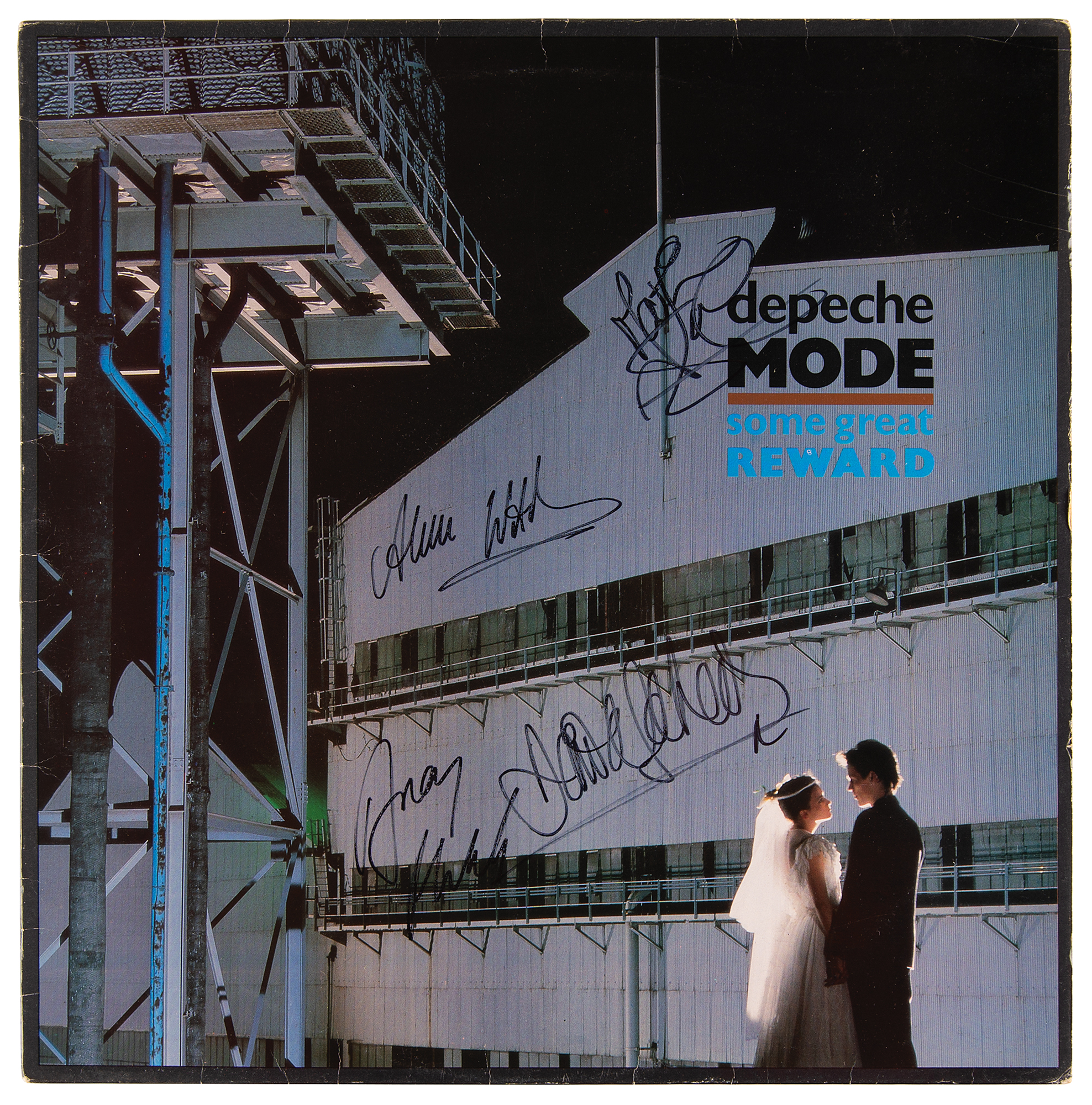 UK vinyl pressing of the 1984 Depeche Mode album Some Great Reward, signed on the front cover in black felt tip by Martin Gore, Alan Wilder, David Graham, and Andrew Fletcher. In fine condition. The record is included. Accompanied by a certificate of authenticity from Tracks.