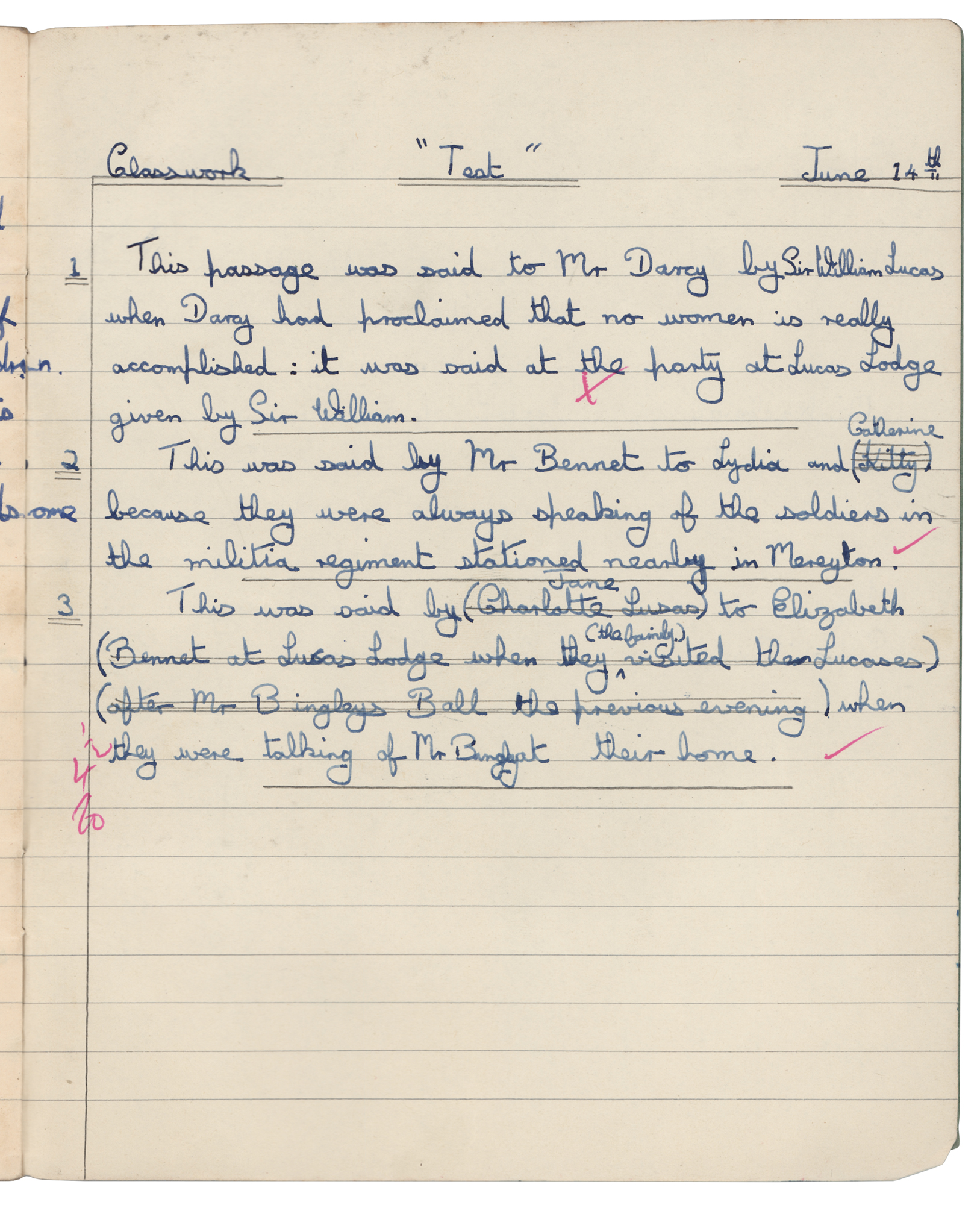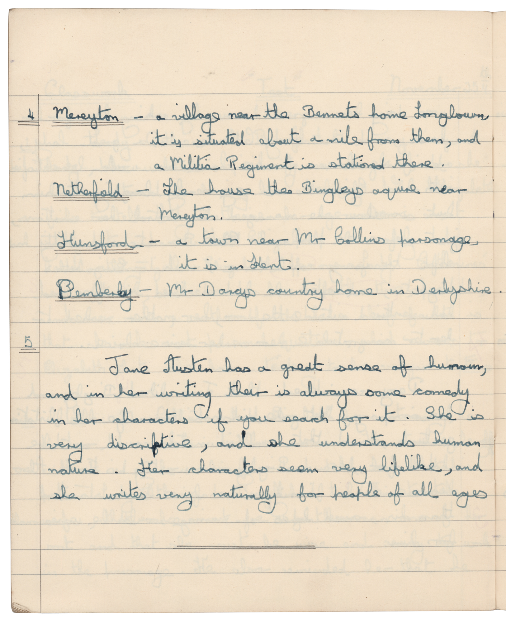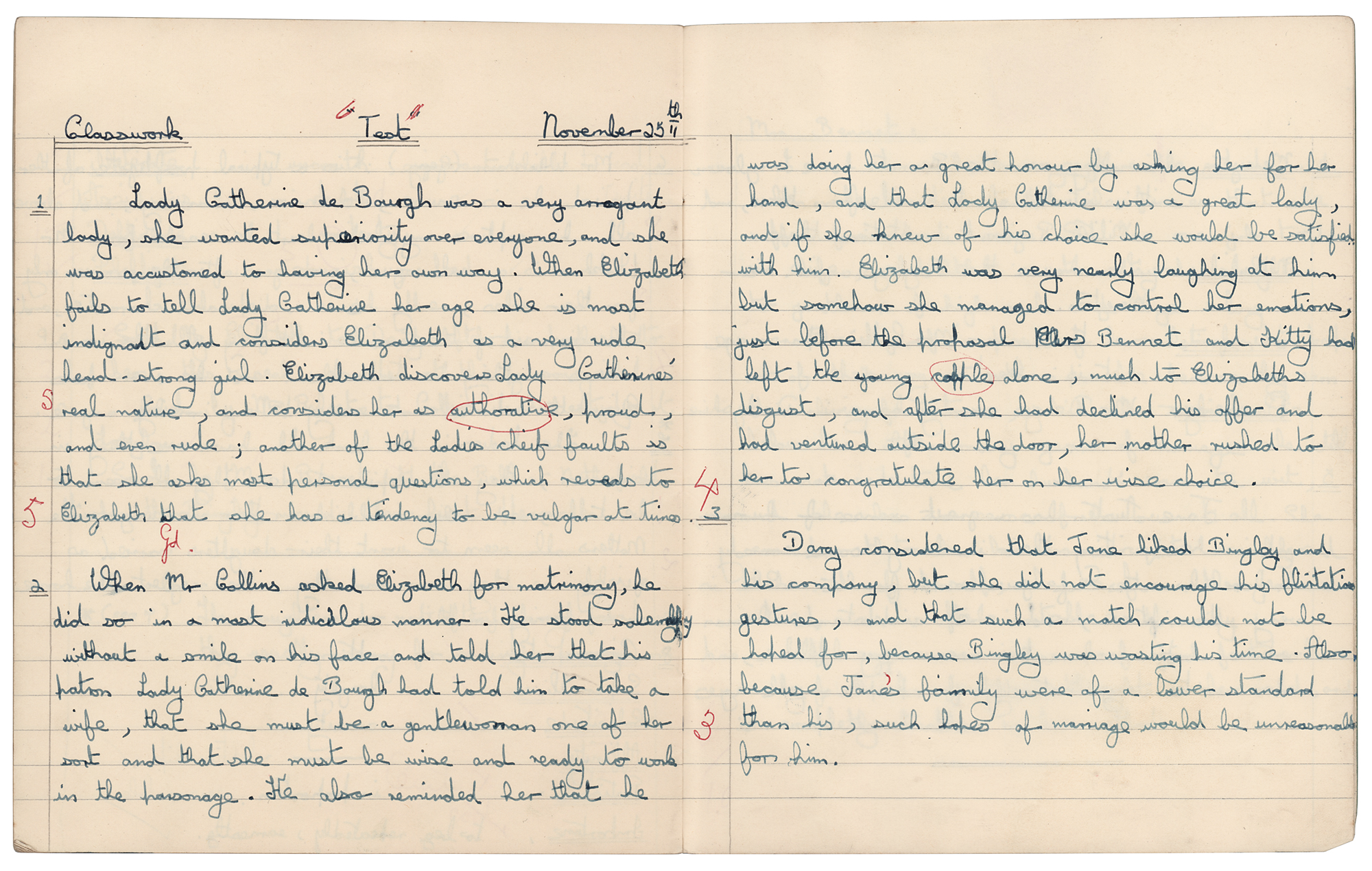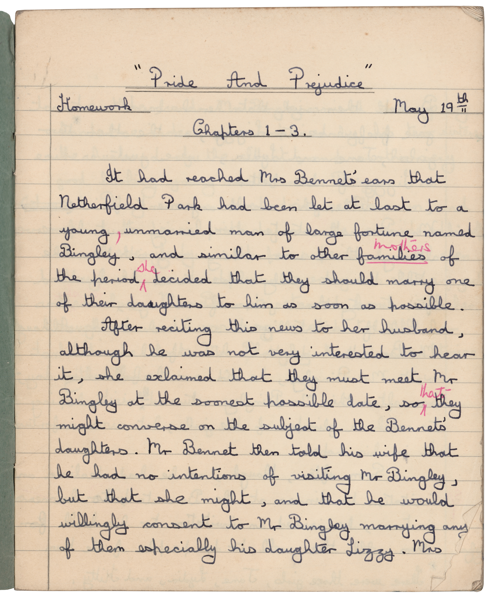 Mitch Mitchell's English Class Notebook with (26) Handwritten Pages on Pride and Prejudice