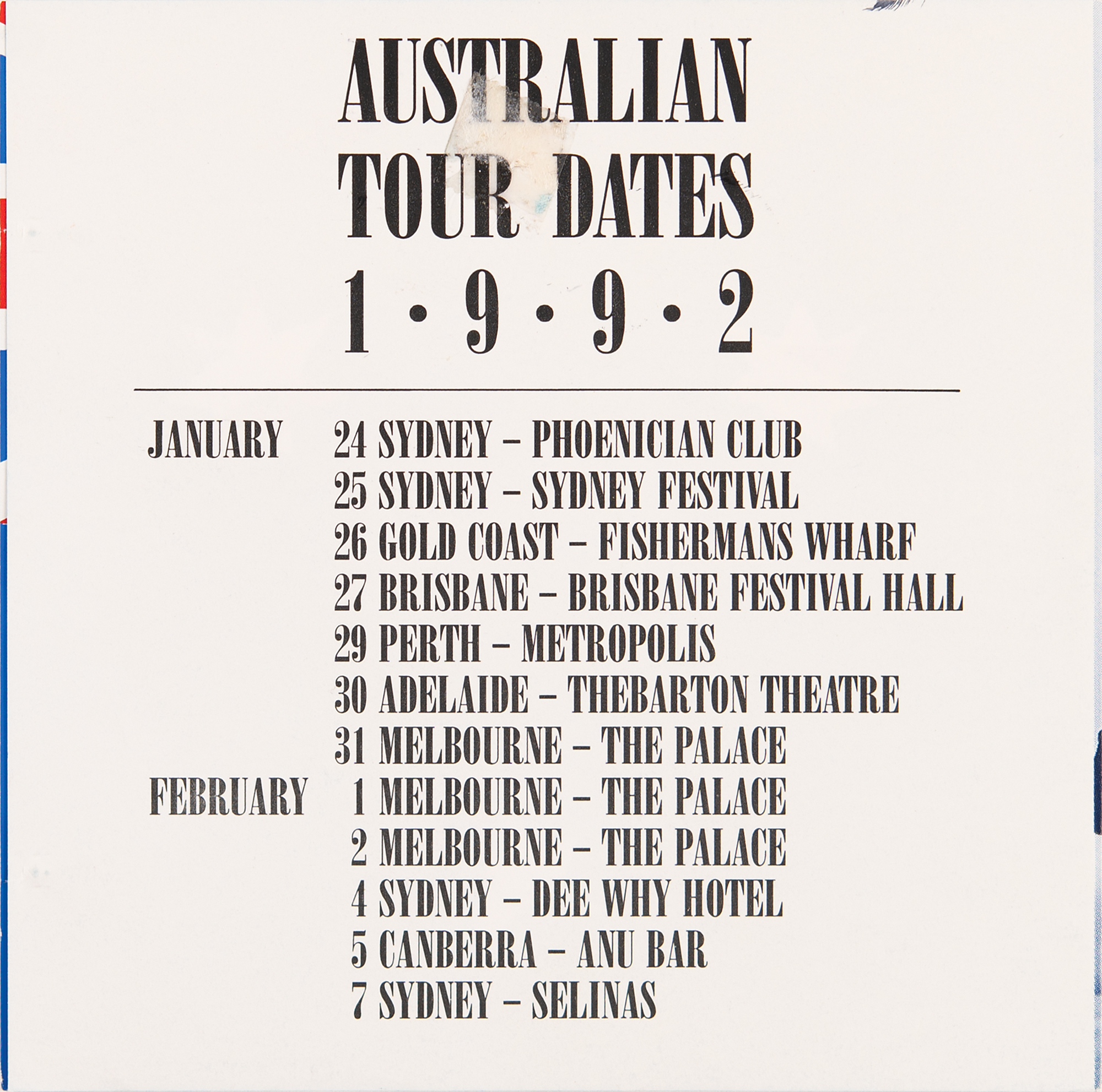 Rare CD booklet for the Nirvana EP Hormoaning, signed on the front in black felt tip, "Kurdt," "Dave," and “Chris,” who adds “Not for sale.” In fine condition. The CD and the track listing sleeve are included. In conjunction with Nirvana's first and only Australian tour, a 12-date stretch in early 1992, Geffen Records released the Hormoaning EP on January 27, 1992. Limited to 10,000 copies, the six-song album was presented to their Australian fans as gratitude for their support of the band's breakthrough 1991 album, Nevermind, and their chart-topping single, 'Smells Like Teen Spirit.' The consignor notes that the signatures were obtained at Adelaide's Thebarton Theatre just three days after the EP's release. With only a handful of autographed copies known to exist, this exceptionally rare CD was signed near the start of Nirvana's unprecedented three-year window of record-setting popularity.