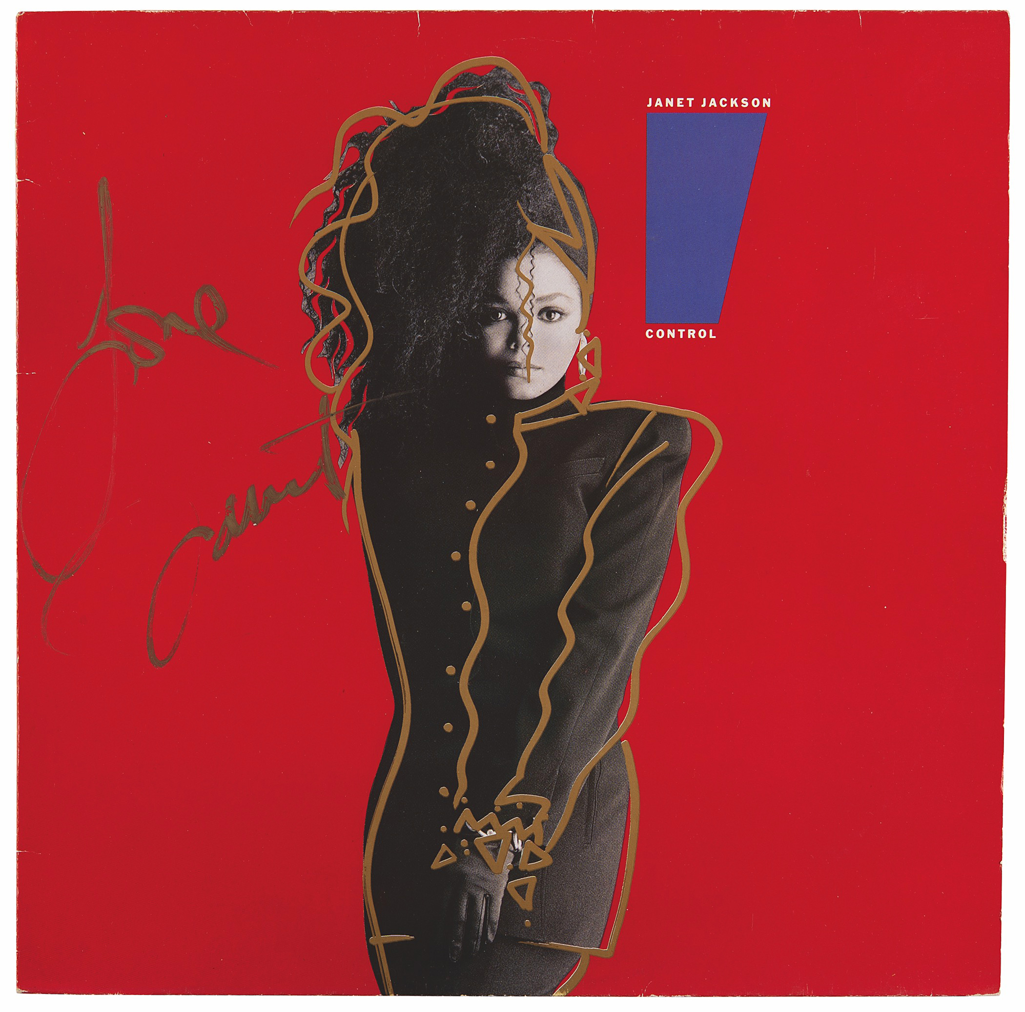 Australian white-label pressing of the Janet Jackson album ‘Control,’ signed on the front cover in gold ink, "Love, Janet." In fine condition. The record is included. The consignor notes that the signature was obtained in Australia in February 1995. Released in 1986, Control was Jackson's breakthrough album, with five of her songs becoming Billboard top five hits.