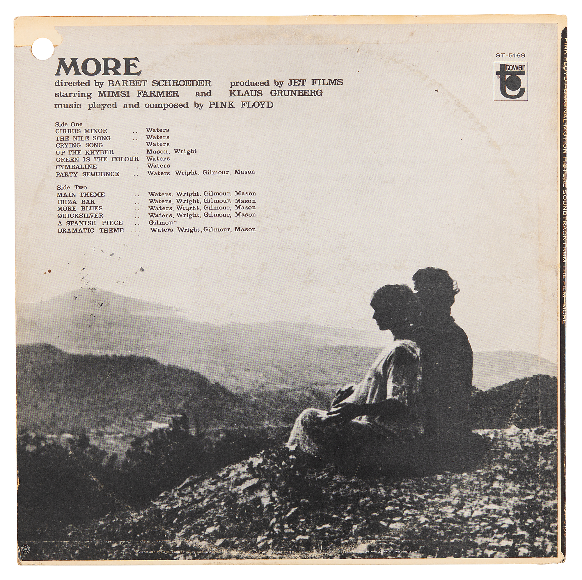 Released on June 13, 1969, More marked Pink Floyd’s third studio album, their first soundtrack album, and their first album without former leader Syd Barrett. Filmmaker Barbet Schroeder, a fan of Pink Floyd, brought a rough cut of the film to London for the band to use as a guideline. Instead of typical background music, Schroeder wanted the songs to feature in the film, such as a record playing at a party. Designed by Hipgnosis, the soundtrack cover uses a shot from the film of two characters playing around a windmill in Ibiza, processed in a dark room to make it look like a psychedelic trip. A rare signed title from the kings of progressive rock.