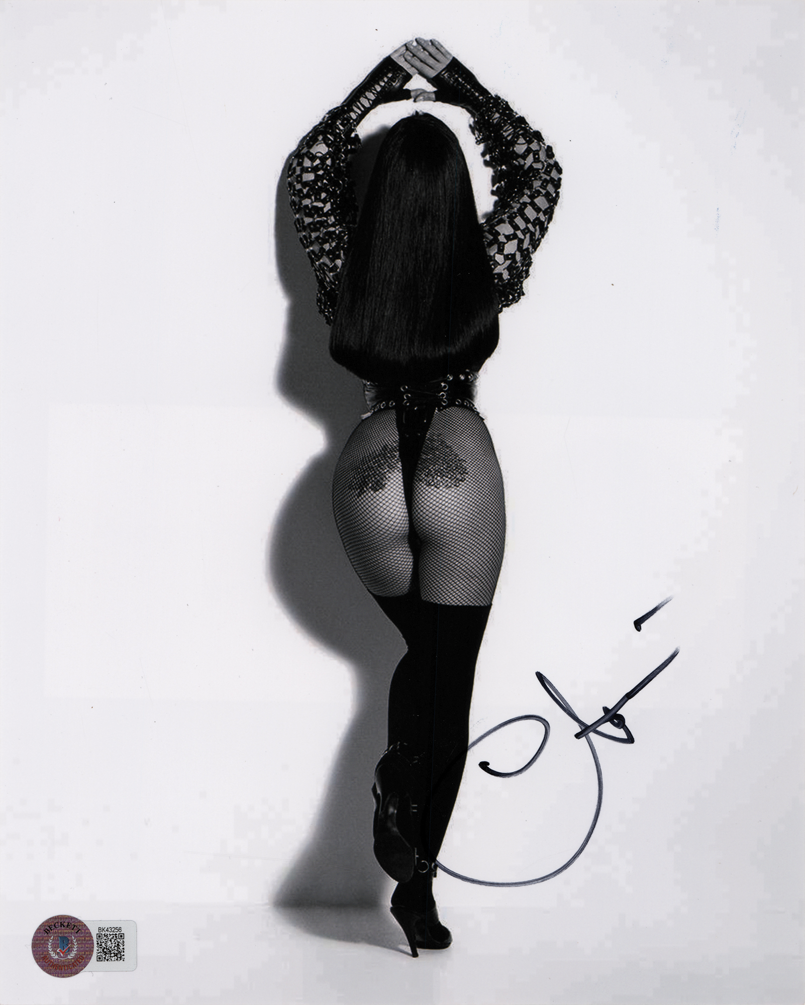 Satin-finish 8 x 10 photo of Cher in a sexy costume, signed in black felt tip. In very fine condition, with a Beckett authentication label affixed to the lower left.
