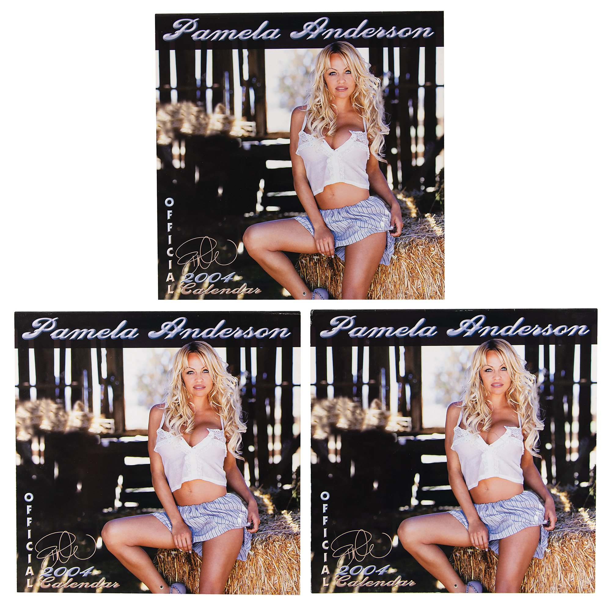 Three official Pamela Anderson calendars for the year 2004, 12 x 12, each signed inside in blue felt tip: two on 'February' and one on 'June.' In fine condition.