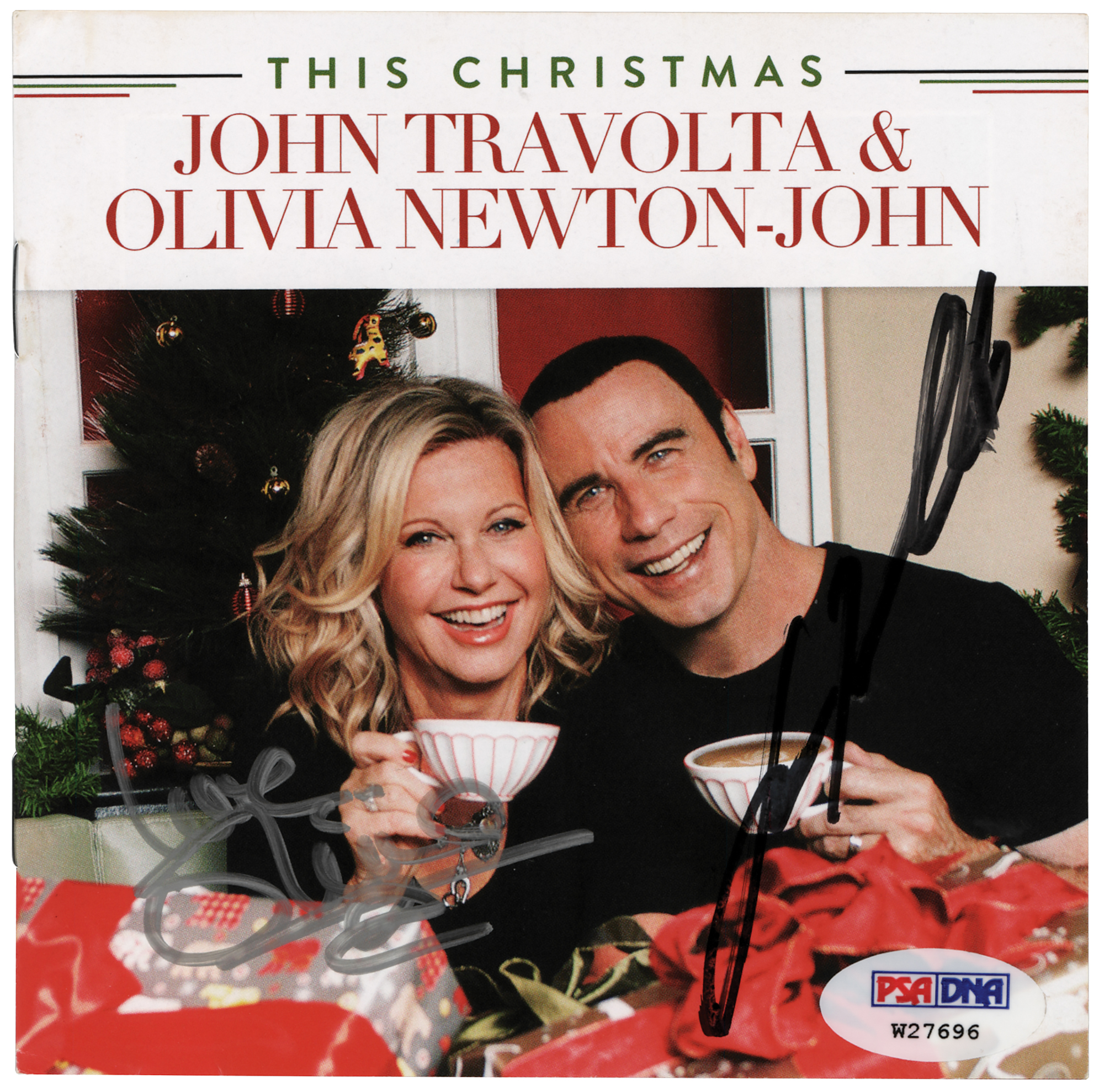 This Christmas CD signed on the front of the booklet in black felt tip by John Travolta, and in silver ink by Olivia Newton-John. In fine condition, with a PSA/DNA label affixed to the lower right. Accompanied by a certificate of authenticity from PSA/DNA. The CD is included.