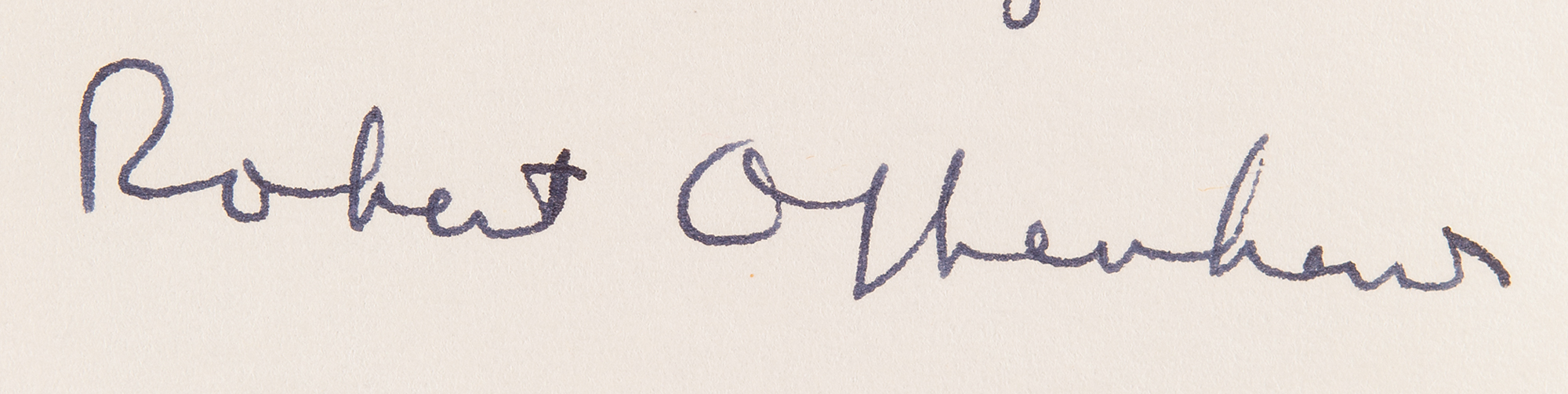 The recipient’s husband, Ransom Van Brunt Lynch (1915-2006), was a prestigious mathematics instructor who taught at Phillips Exeter Academy in 1939 and continued to do so for over 40 years, in addition to teaching stops at the Harvard Graduate School of Education, the Los Alamos Ranch School, and the Princeton Center for Advanced Studies; although unconfirmed, it appears probable that Lynch and Oppenheimer became acquaintances during their shared tenures in either New Mexico or New Jersey.