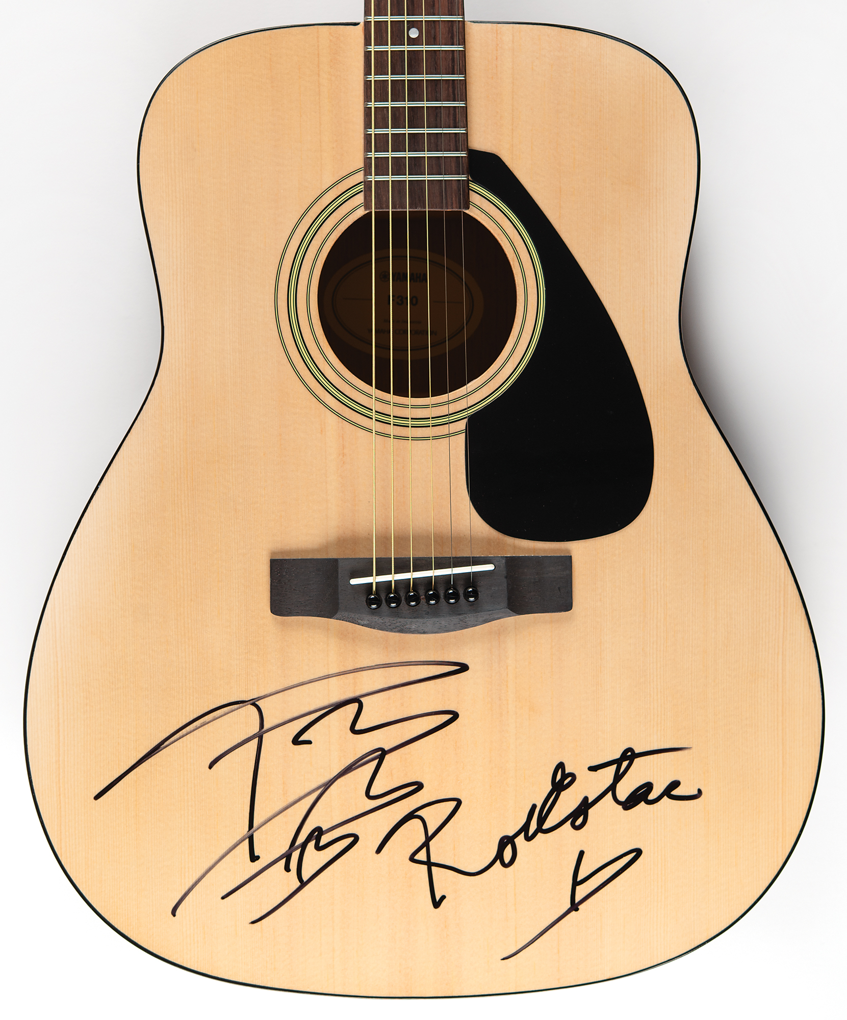 Yamaha F310 acoustic guitar with a natural finish, signed prominently on the body in black felt tip by Post Malone, who adds the name of his 2021 hit single “Rockstar.” In very fine condition.