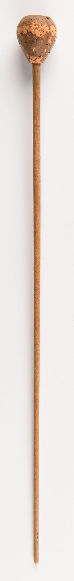 Leonard Bernstein's personally-owned and -used custom-made baton, used to conduct a New York Philharmonic performance of Dmitri Shostakovich's Symphony No. 5 in the spring of 1967. Made to Bernstein's specifications by NY Philharmonic timpanist Saul Goodman, the baton measures 15˝ long overall and weighs a mere 6 grams; it features a cork bulb grip and a thin, lightweight wooden rod. The cork exhibits a distinctive patina from Bernstein's use.