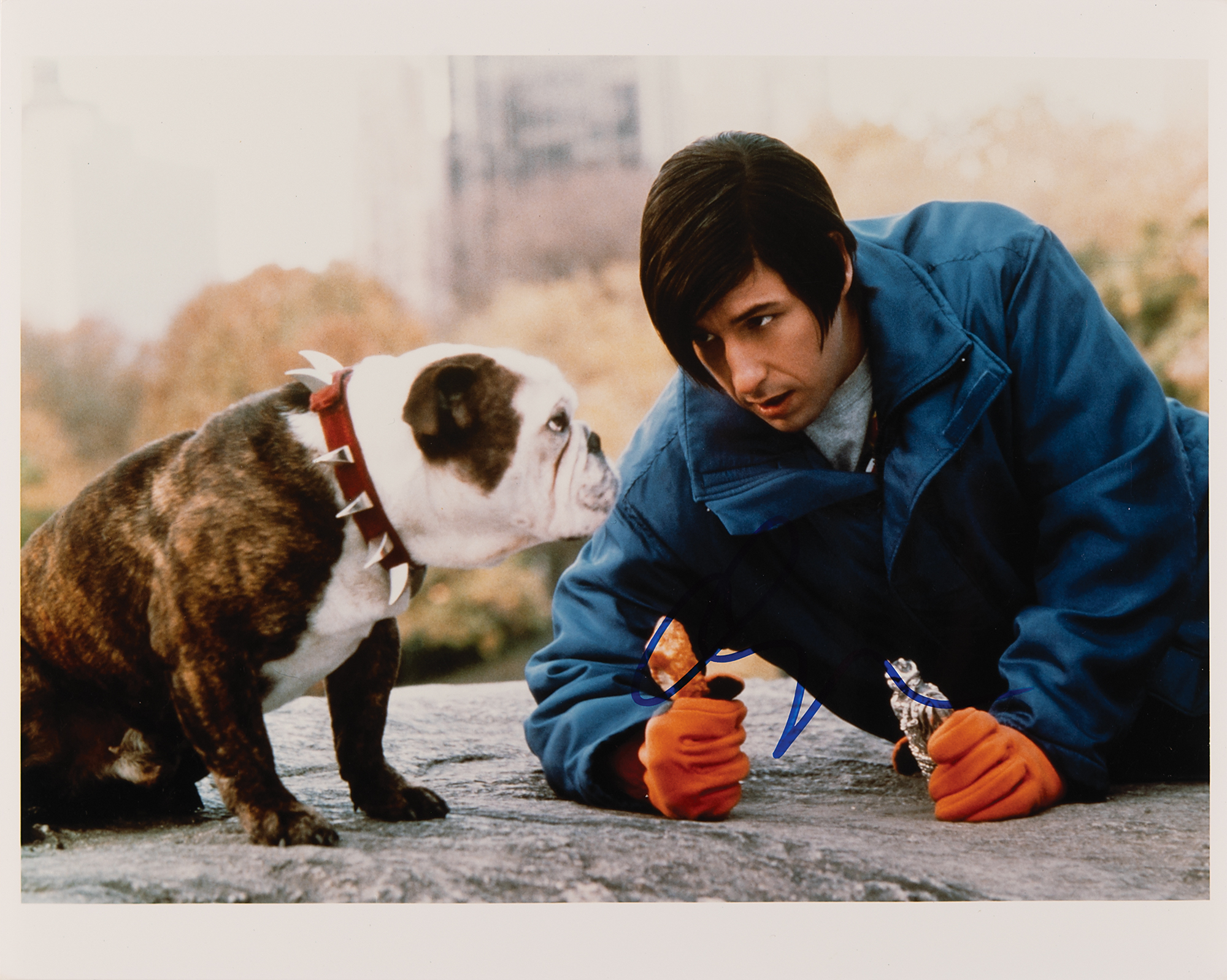 Color glossy 10 x 8 photo of Adam Sandler as the title character in the 2000 dark comedy Little Nicky, signed in blue felt tip. In fine condition. Originally obtained by in-person specialist Mike Wehrmann.