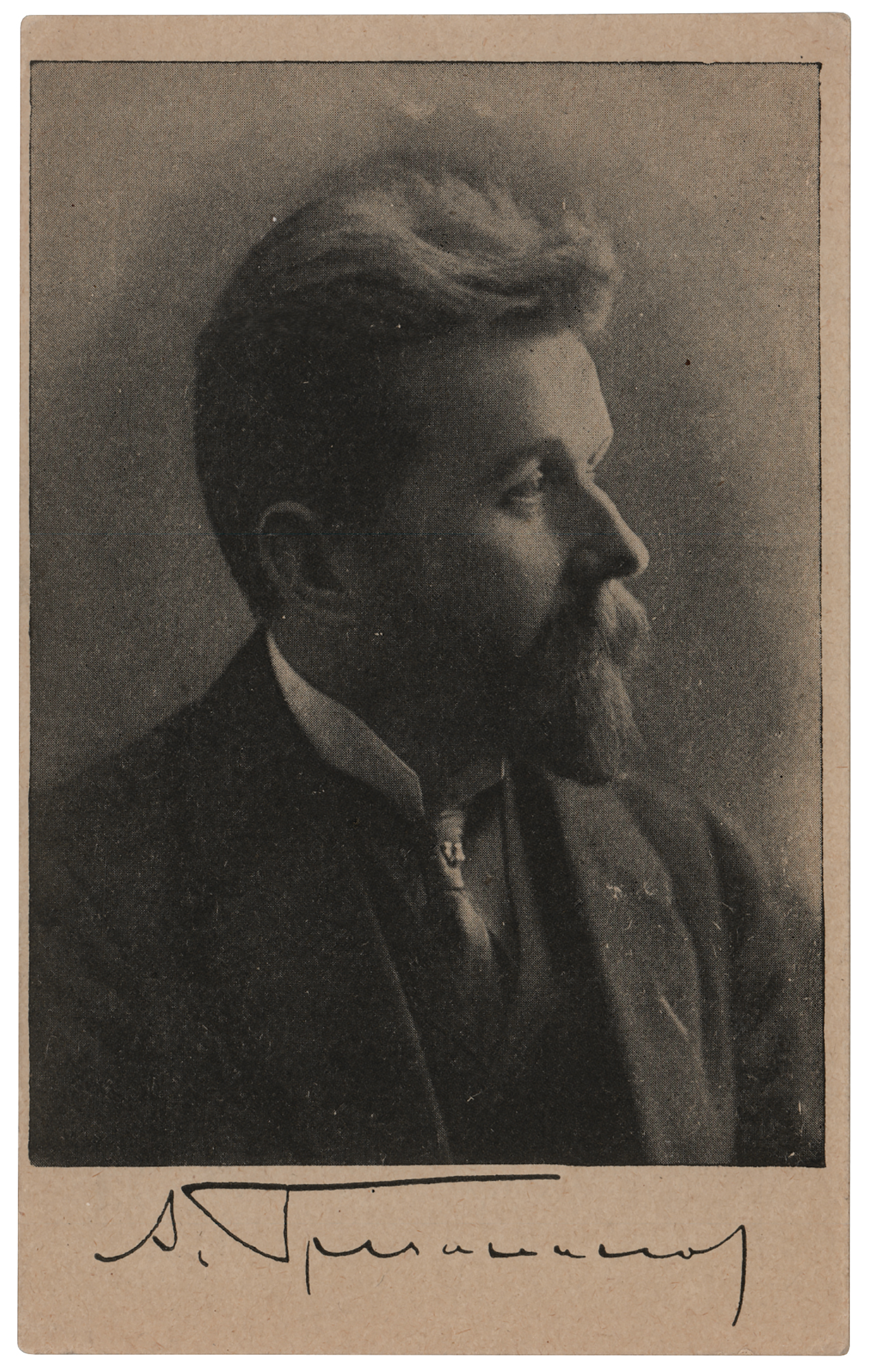 Russian Romantic composer (1864–1956) who worked during a transitional era in the history of Russian music. ALS in Russian, signed “A. Gretchaninov,” penned on the reverse of a 5.5 x 3.5 postcard bearing a portrait of Alexander Gretchaninov above a facsimile signature, postmarked 1933. Handwritten letter (translated): “What does it mean, dear Ivan Grigoryevich, that I have no word from you and you don’t answer my letter?” In fine condition.