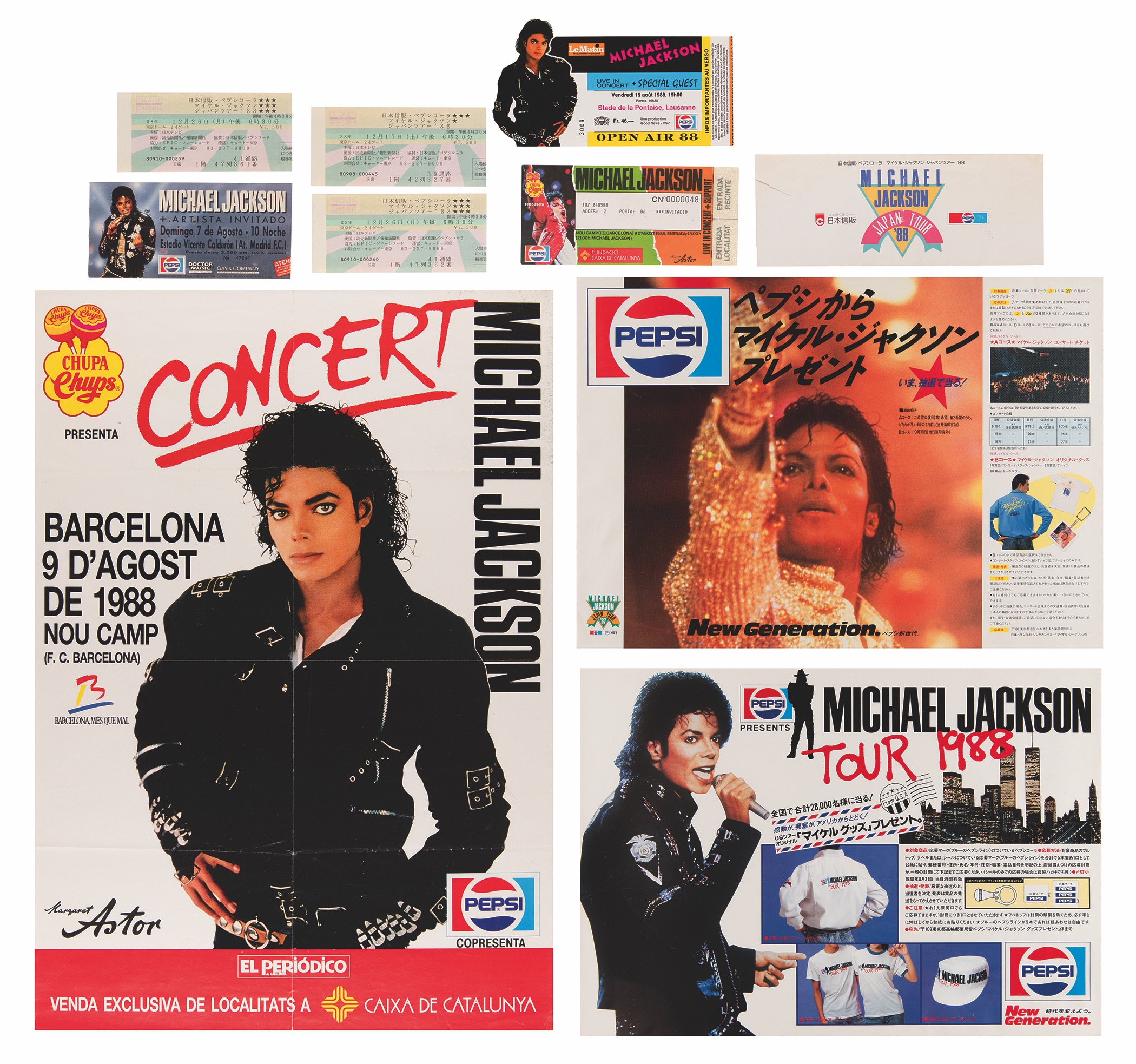 Nine items from Michael Jackson’s massive Bad World Tour of 1987-1989, including: