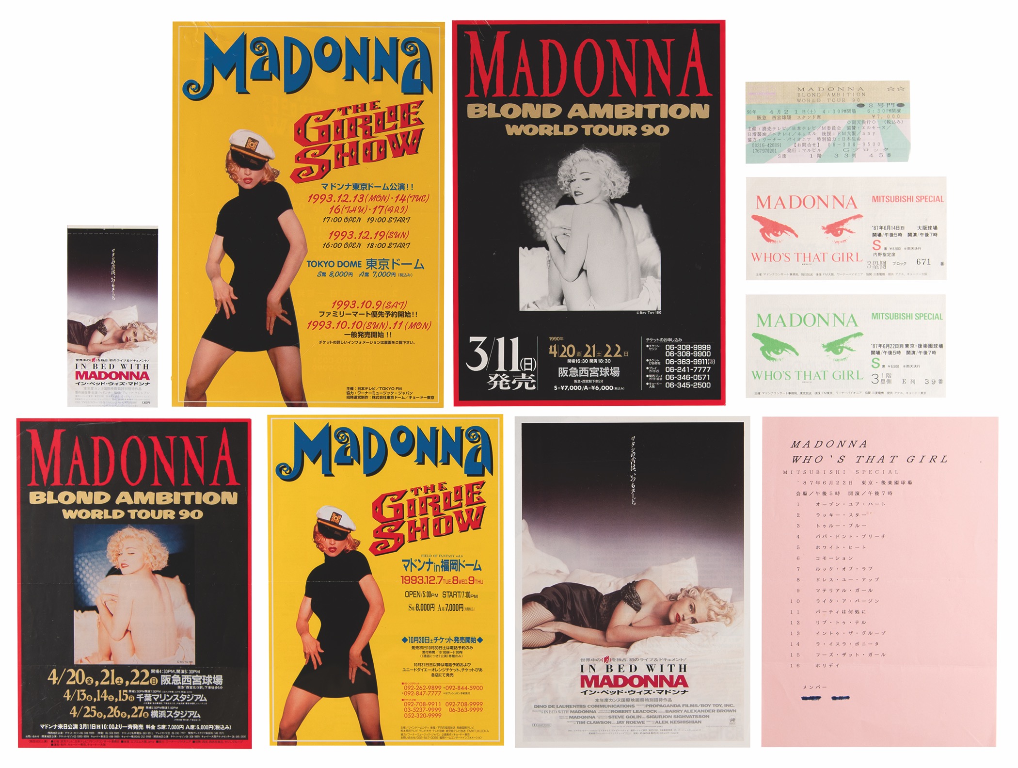 Small collection of 10 items related to Madonna’s tours of Japan, including: