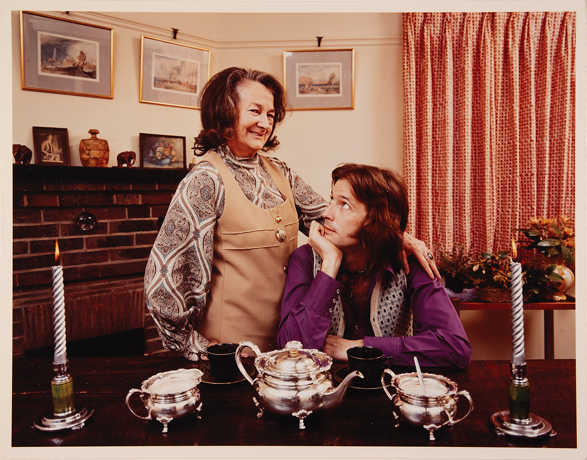 Original color semi-glossy 14 x 11 photographic print of a photograph taken by Life Magazine's John Olson in 1971, showing Eric Clapton at the dinner table with his grandmother, Rose Clapp, who raised him, at her home in Surrey, England. Printed circa 1990s, the reverse bears "Kodak Professional" watermarks and is annotated in red pencil: "Photo by John Olson/LIFE, Not for Reproduction." In fine condition. This image appeared in the article 'The Rock Family Affair,' published in the September 24, 1971 issue of Life Magazine.