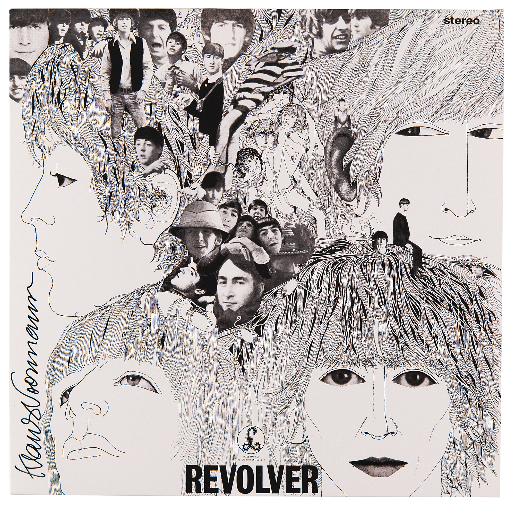 Revolver album by the Beatles, signed on the front cover vertically in black felt tip by its designer, Klaus Voormann. In very fine condition. The record is included.