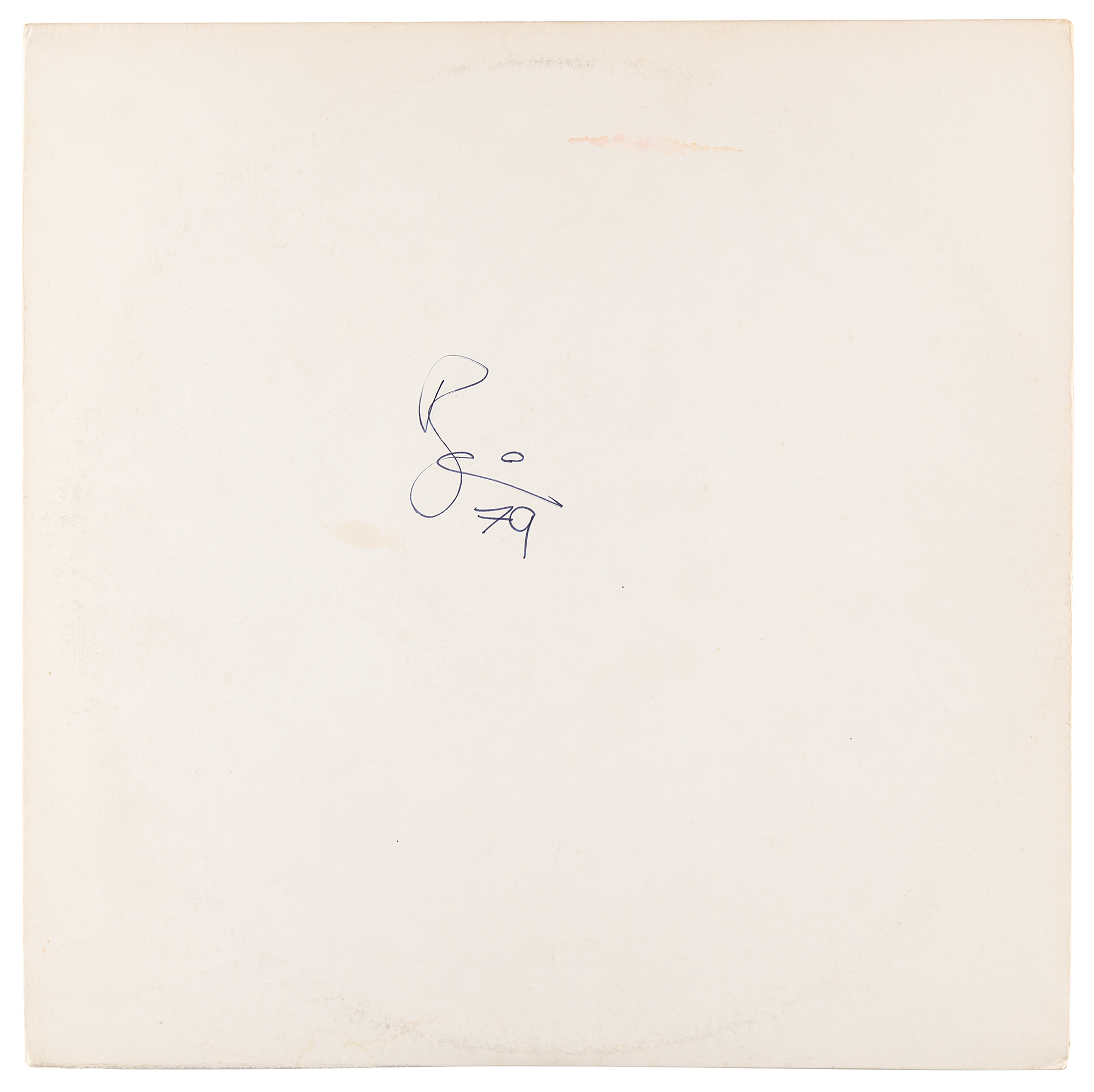 Blank album sleeve for David Bowie's album Lodger, signed on the front cover in black ink, "Bowie '79." In fine condition, with some light scuffing. The record is included. Accompanied by a letter of provenance from the original recipient, in part: "I received the autographed "Lodger" album by David Bowie in late spring or early summer of 1979 from Jay Hart who was the RCA Records promo person for the greater Cincinnati region. At the time I was the music director for WVXU, a high- powered, student run FM radio station. We were playing music from The Police, The Talking Heads, Devo and many other groups long before the established corporate radio stations were. As a result (and possibly my unbridled enthusiasm) the promo people were very kind to me with concert tickets, discs and other swag. I kept the Bowie record, a Sex Pistols t-shirt and a few picture discs in my possession since then." Lodger was Bowie's 13th studio and a modest commercial success, peaking at number 4 in the UK and number 20 in the US.