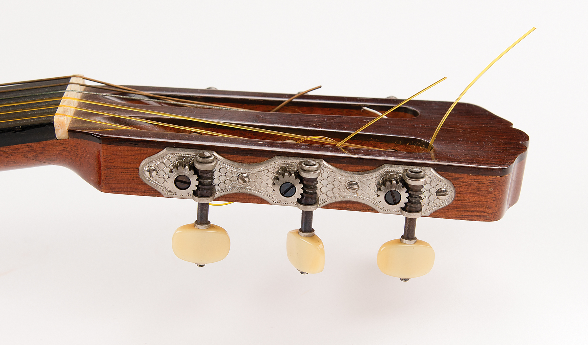 Born in Puerto Rico in 1917, Manuel Velasquez attended woodworking school as a youth and worked at a local cabinet shop when he was 14 years old. He created his first guitar in 1929 when he was only 12 years old in Puerto Rico, having learned the art of guitar making from his older brother and absorbed valuable lessons about species of wood from his father. Another influence was a guitar teacher named Jorge Rubiano who encouraged the young Velasquez to see a Segovia perform in Puerto Rico. Hearing Segovia play on his 1937 Hauser greatly impacted Velasquez. He was also inspired by the guitar of Antonio de Torres and Santos Hernandez. After moving to New York in 1941, Velasquez worked as a cabinet maker and a joiner in a shipyard before opening his first workshop in 1948. In time, he gained many admirers, including the premier classical guitarist of all time, Andres Segovia.