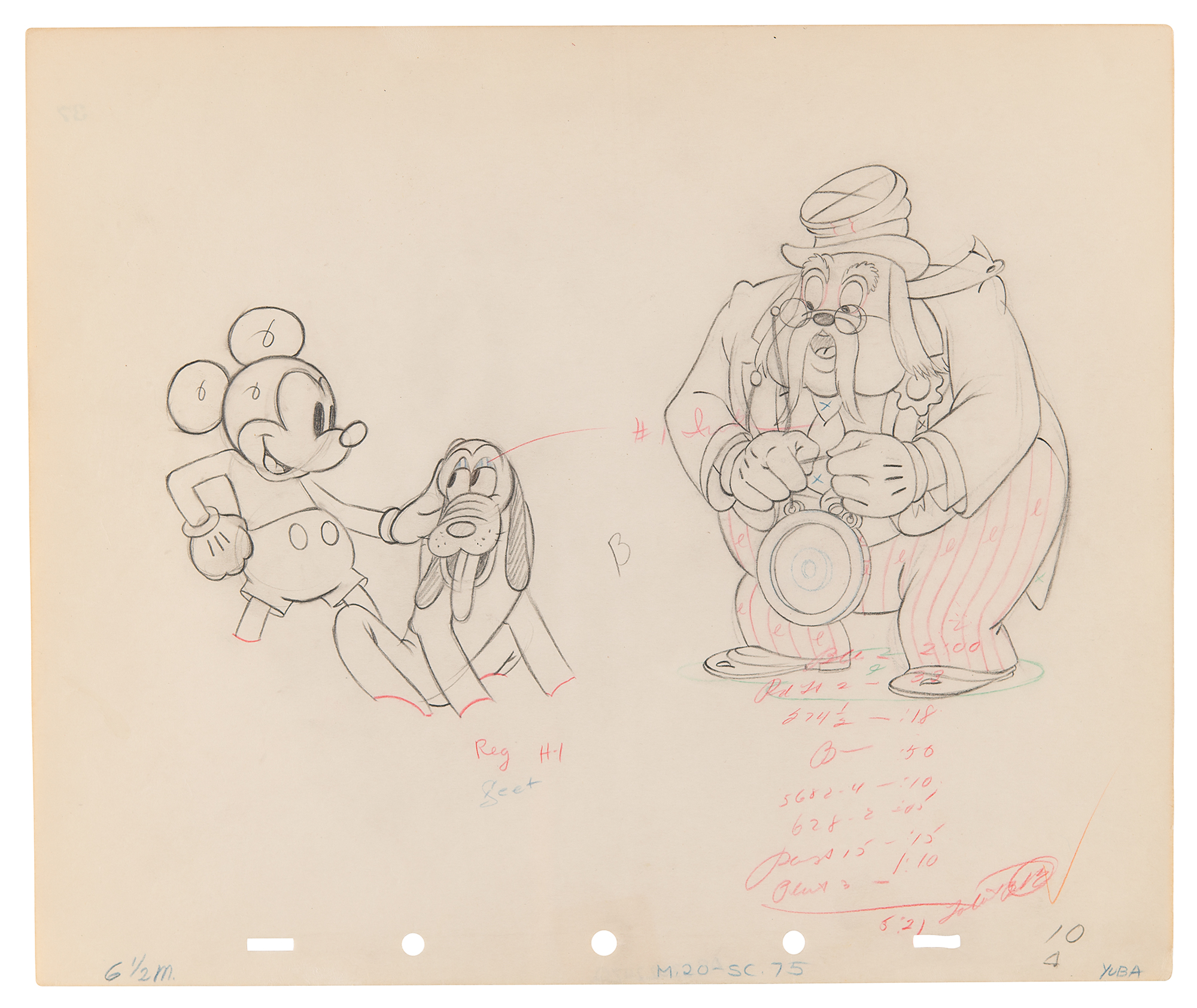 Mickey Mouse, Pluto, and Judge production drawing from Society Dog Show