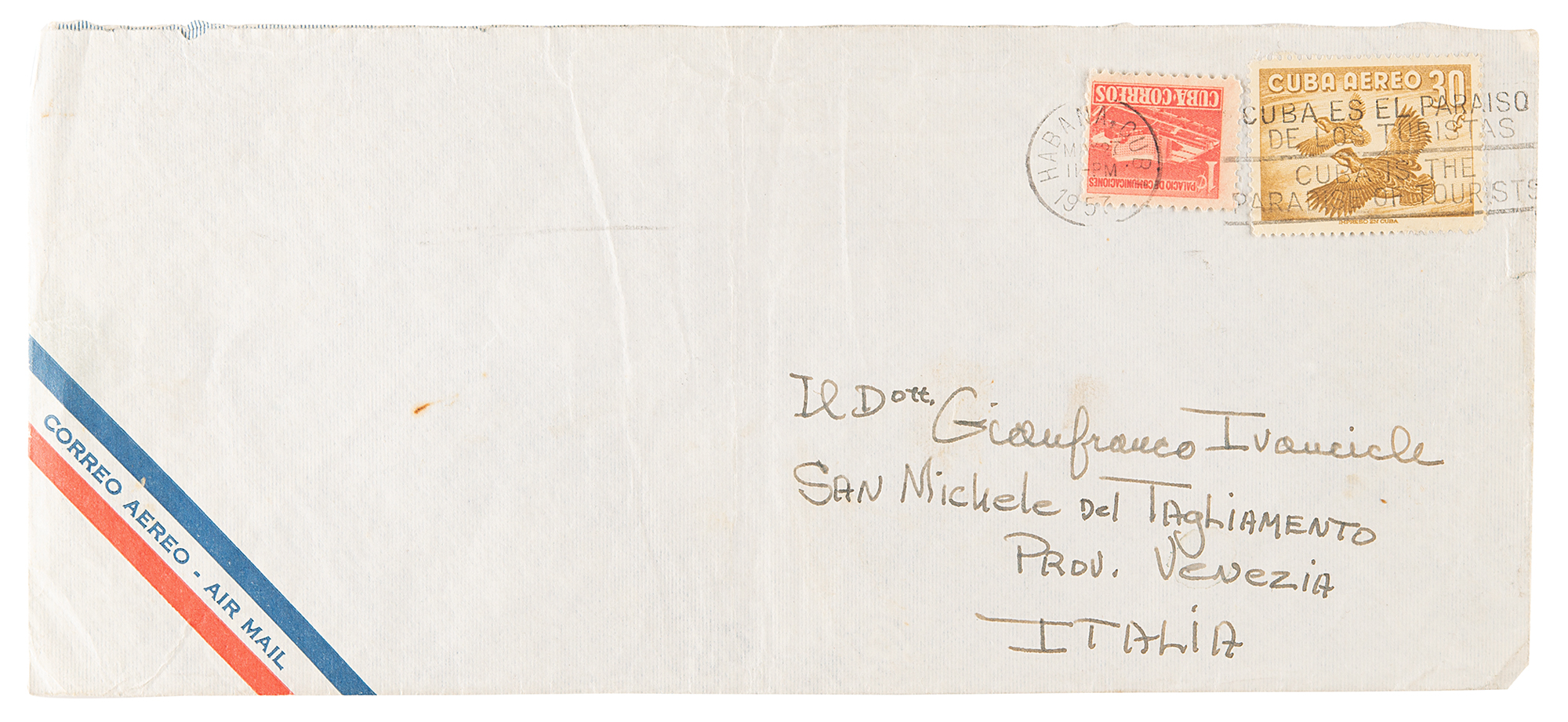 Gianfranco made his first trip to Cuba in 1950. ‘Hemingway allowed him to live for three years in the Finca tower and offered him his paternal friendship’ (Jeffrey Meyers). Gianfranco was short, stocky, handsome, quiet, modest, and distant, and was hardly in unison with Hemingway's noisy companions, Meyers says. Between several trips to Venice, Gianfranco made another long stay at Finca Vigia, between 1954 and 1956. Hemingway saw in Gianfranco ‘a masculine version and a substitute for Adriana,’ but above all a confidant and discreet companion, whose absence weighs on him: ‘We miss you a lot, and it’s very sad to see someone leave who was always around, a bit like a brother. Now I have no more friends, no more drinking companions and no more brave banana pickers.’ In fine condition. Accompanied by the original mailing envelope addressed in Hemingway's hand and by two export certificates from the French Ministry of Culture.
