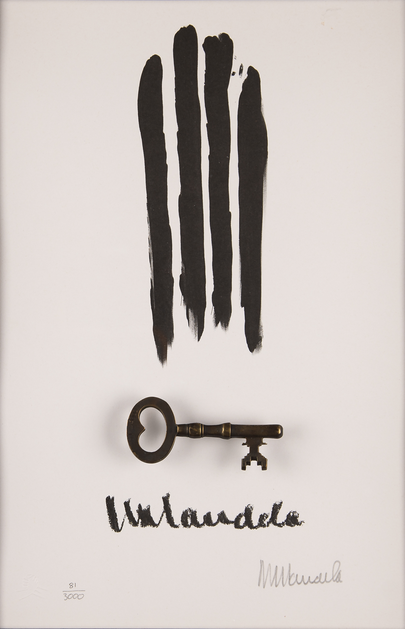 Mandela's powerful 'Key & Bars' lithograph, numbered 81 of 3000