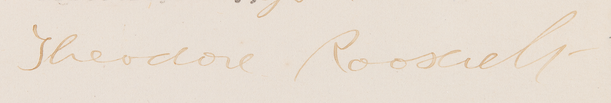 Moreover, this is a remarkable association piece: we find no other auction records of letters from Theodore Roosevelt to Franklin D. Roosevelt, though some belong to museums and institutions. Theodore Roosevelt was actually a fifth cousin of Franklin D. Roosevelt, and the uncle of his wife, Eleanor. At their 1905 wedding, President Theodore Roosevelt attended and 'gave the bride away,' as her parents were long deceased. As a letter from a past president to a future one—from one Roosevelt to another—this is an exceptional, museum-quality piece.