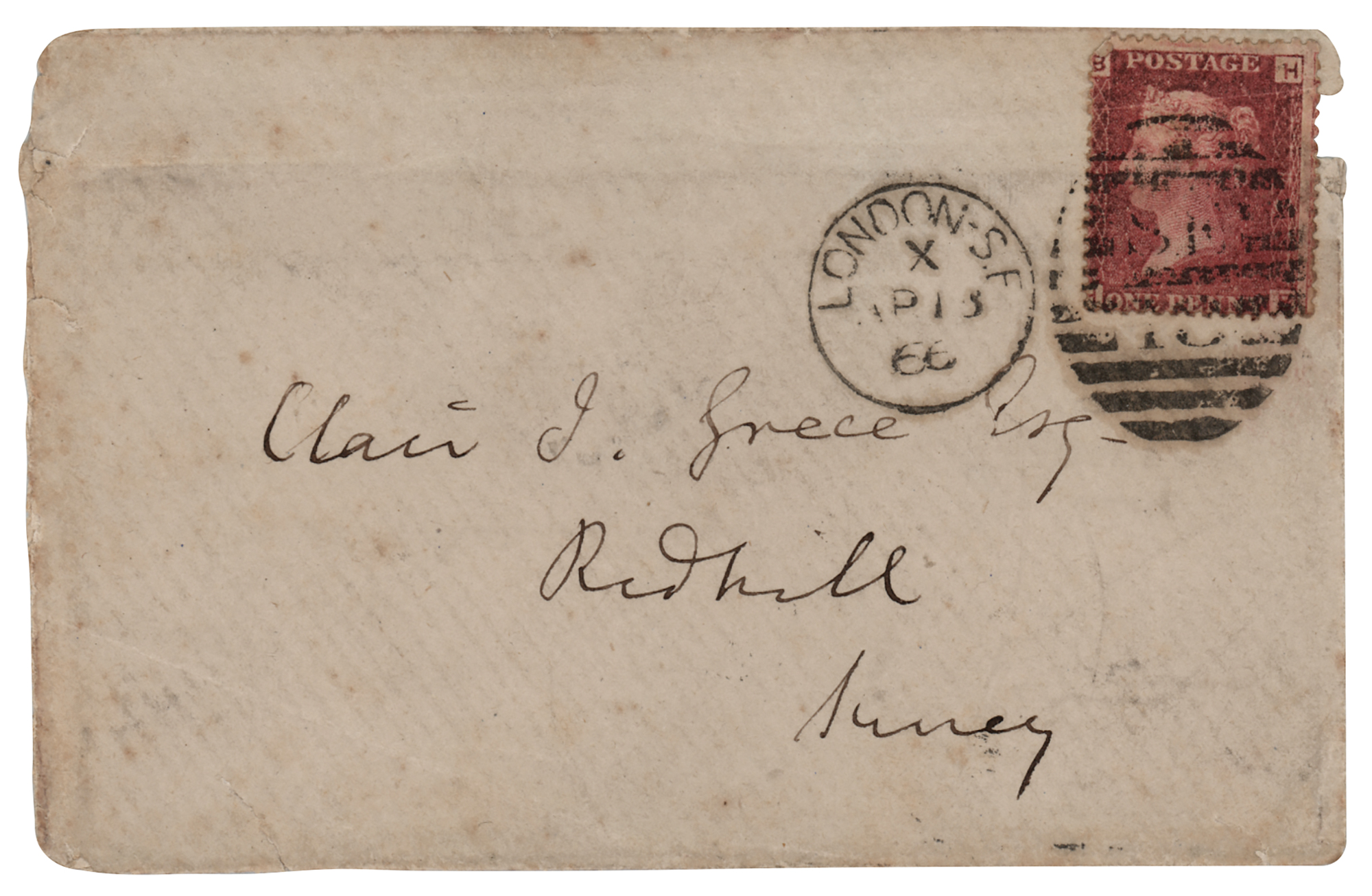 British philosopher and civil servant (1806-1873) who was an influential contributor to social theory, political theory, and political economy. ALS signed “J. S. Mill,” one page, both sides, April 18, 1866. Addressed from Blackheath Park, a handwritten letter to Charles J. Greece, in full: “Though in your letter of the 16th inst. You do not claim me as an acquaintance, I have not forgotten our conversation previously at the India House. You are probably aware that an enquiry into the electoral corruption at Reigate is to be moved by the Chairman of the Committee, and I presume that, as a matter of course the issue of a new writ will in the meantime be responded." In fine condition, with short splits to the ends of the folds. Accompanied by the original hand-addressed mailing envelope.