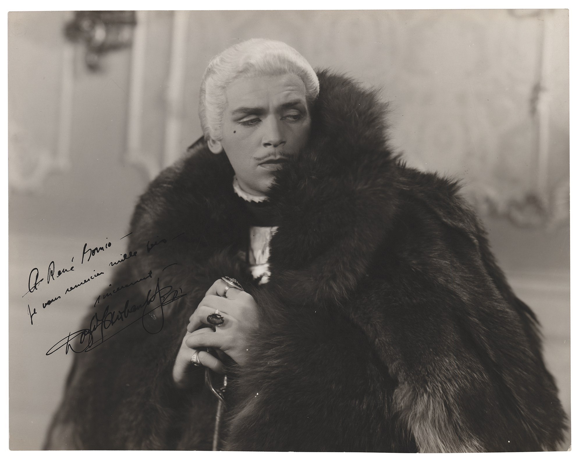 Vintage semi-glossy 12 x 9.25 photo of Grand Duke Peter in the 1934 historical drama The Rise of Catherine the Great, signed with an inscription in French in fountain pen by Douglas Fairbanks, Jr. In fine condition. From the David Seltzer collection.