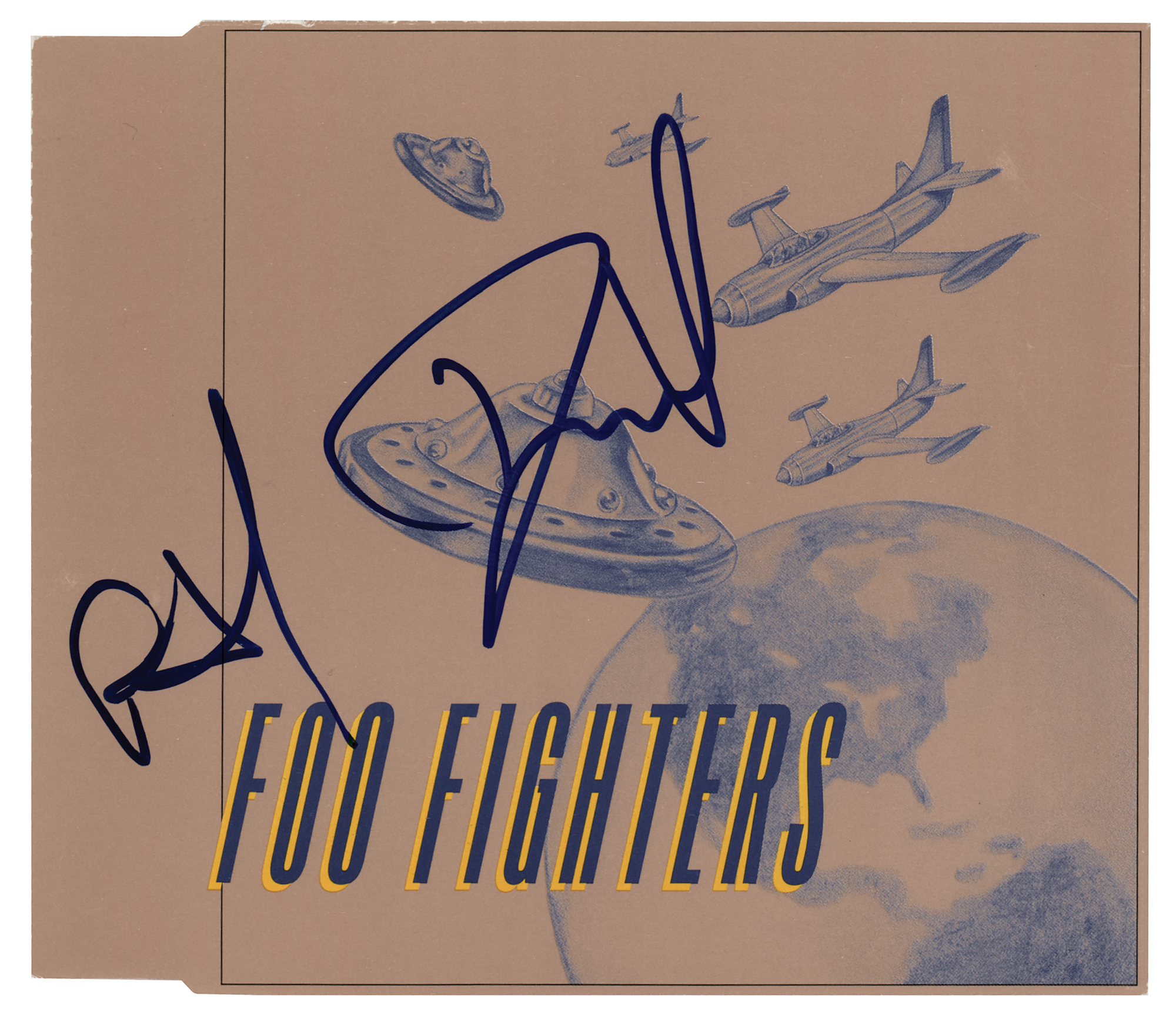 Single CD for the Foo Fighters song 'This is a Call,' signed on the front in blue felt tip by Dave Grohl and Pat Smear. In very fine condition. The CD and jewel case are not included.