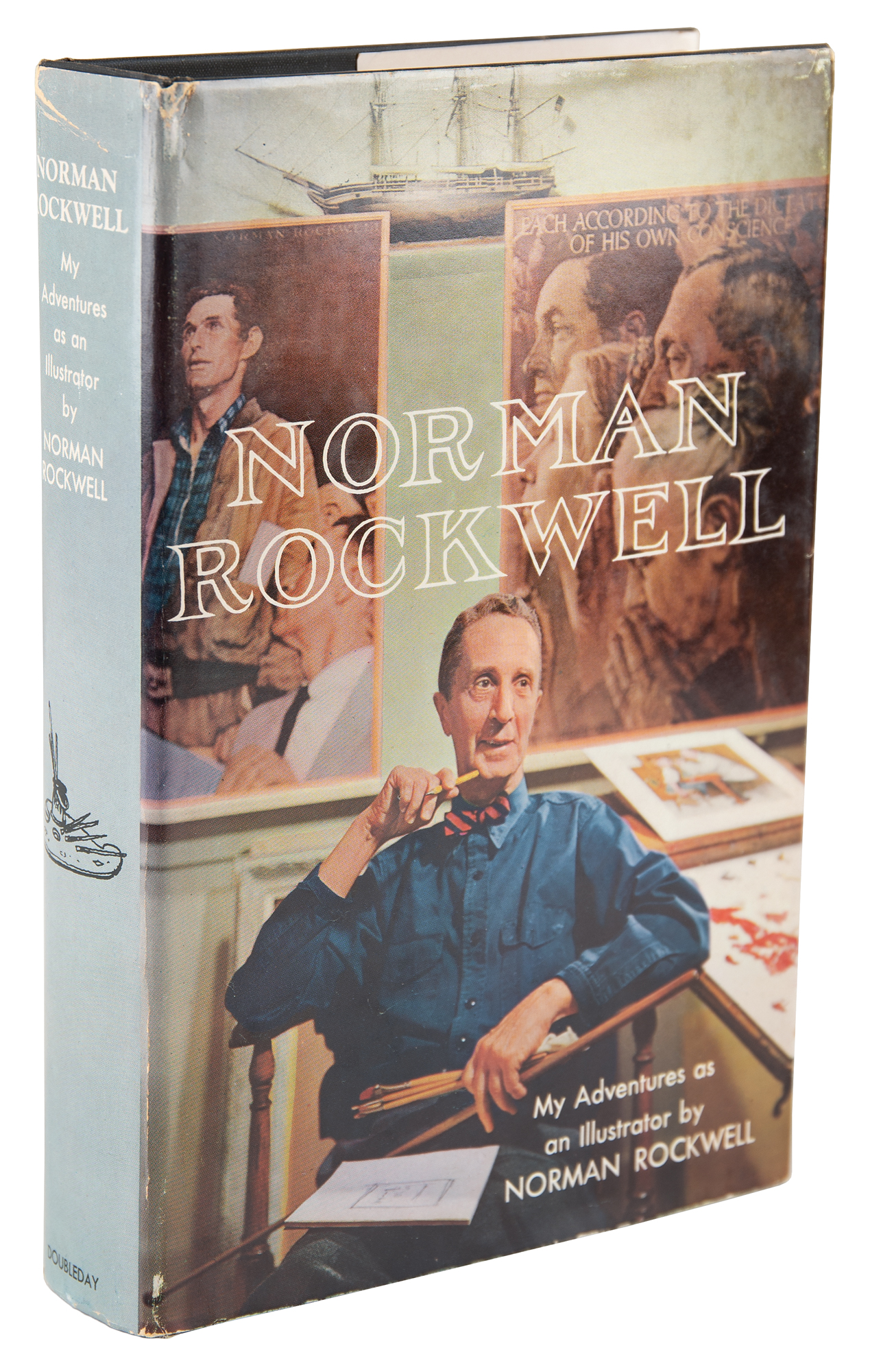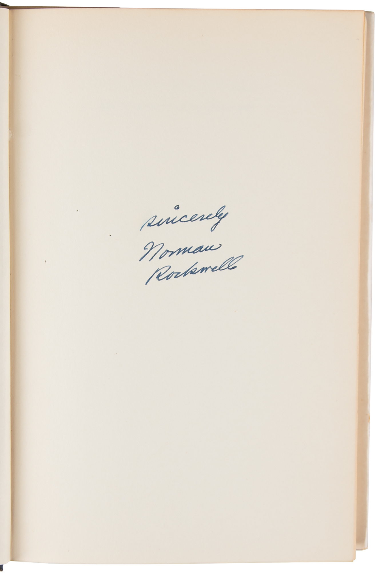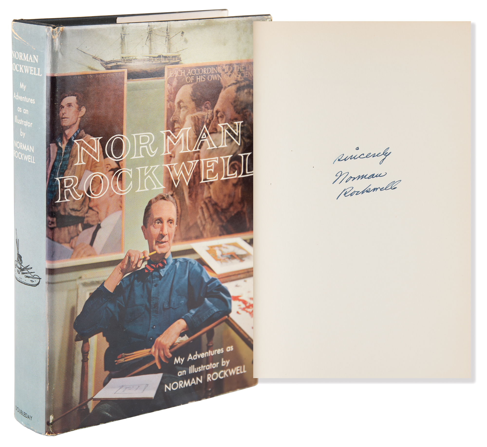 Signed book: My Adventures as an Illustrator. First edition. Garden City, NY: Doubleday & Company, 1960. Hardcover with dust jacket, 6.5 x 9.5, 436 pages. Signed on a free end page in fountain pen, "Sincerely, Norman Rockwell." In fine condition, with a small crease to the dust jacket spine, and an ownership signature to the first free end page.