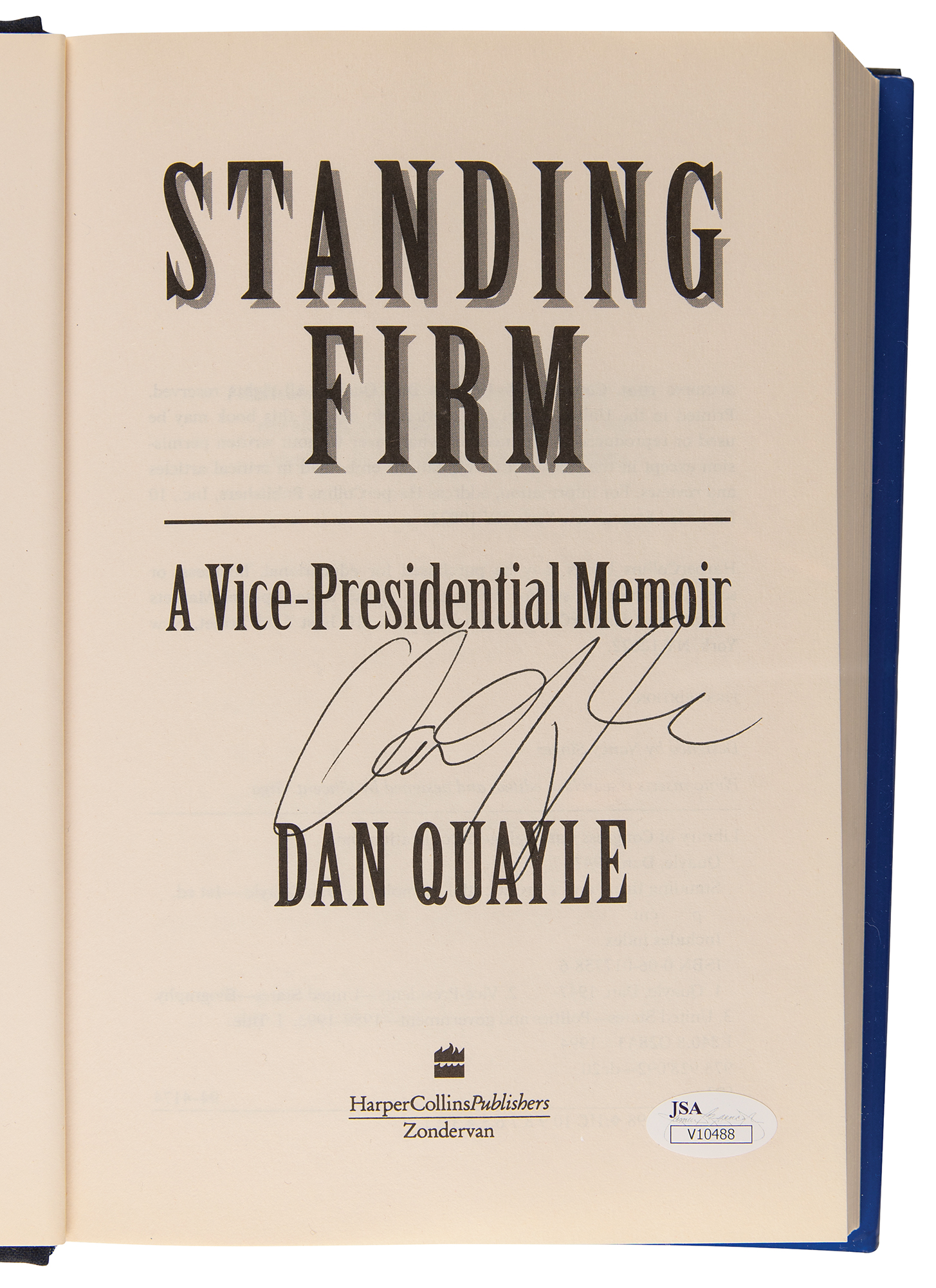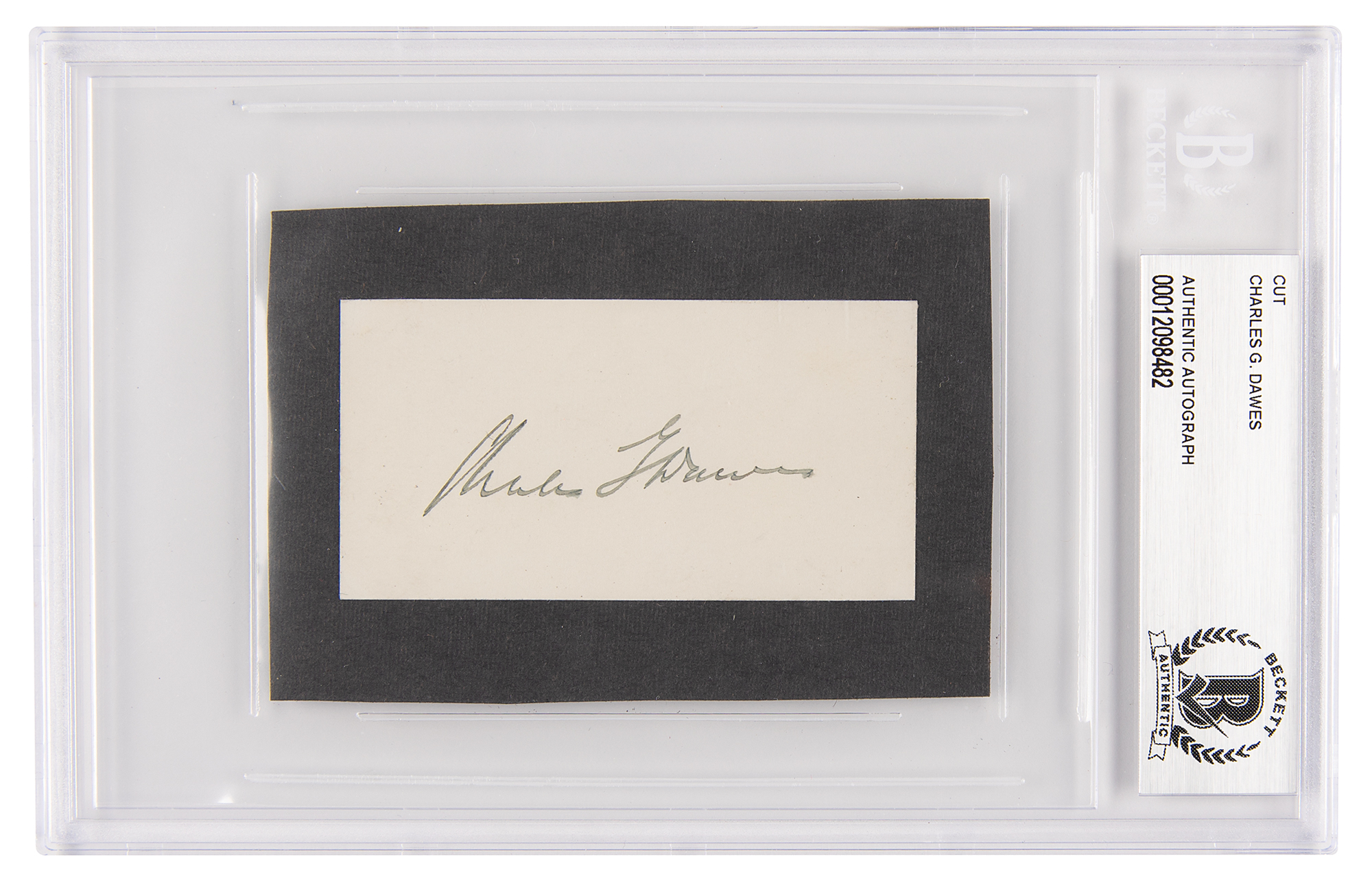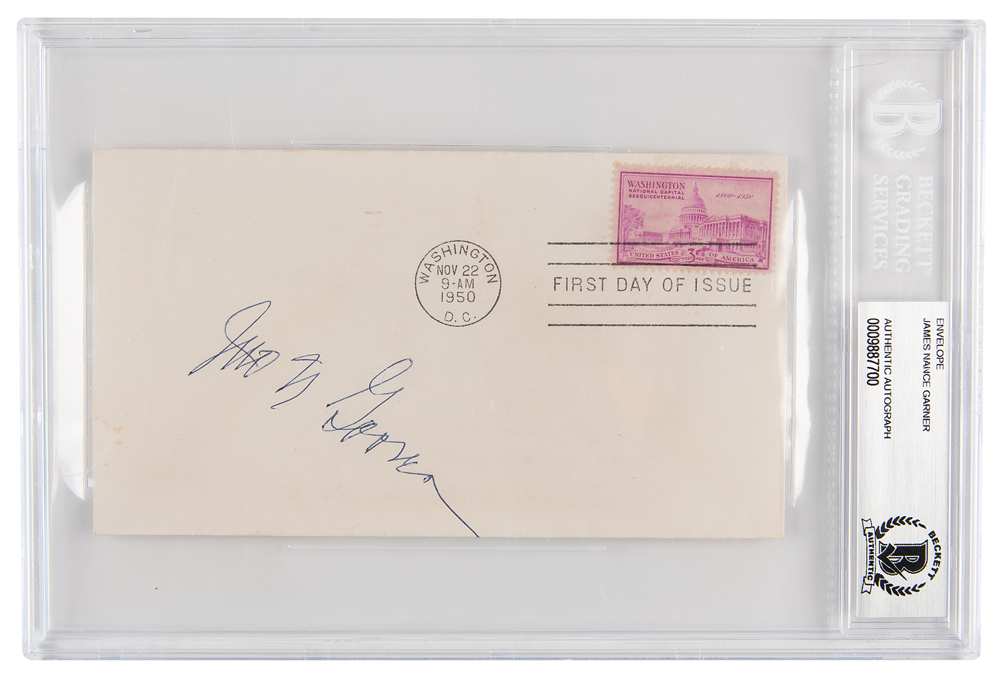 Collection of 16 items signed by an American vice president from the 20th or 21st centuries, consisting of formats like letters, books, and signatures. The list includes (signatures unless otherwise noted): Charles W. Fairbanks (TLS as VP), James S. Sherman (ALS), Thomas R. Marshall (TLS as VP), Charles G. Dawes, Charles Curtis (TLS), John Nance Garner (FDC), Henry A. Wallace, Alben W. Barkley, Hubert H. Humphrey (TLS), Spiro Agnew, Walter Mondale, Dan Quayle (book, first edition of Standing Firm), Al Gore (book, first edition of The Spirit of Family, also signed by Tipper Gore), Dick Cheney, Mike Pence (signed photo), and Kamala Harris. In overall very good to fine condition, with JSA labels affixed to the Agnew, Cheney, Gore, Humphrey, Pence, and Quayle items. Accompanied by full letters or certificates of authenticity from Beckett (Sherman and Marshall), PSA/DNA (Curtis and Gore), or JSA (Agnew, Cheney, Humphrey, Mondale, Pence, and Quayle). Fairbanks is encapsulated in a PSA/DNA authentication holder, and Barkley, Dawes, Garner, Harris, and Wallace are encapsulated by Beckett Authentication Services.