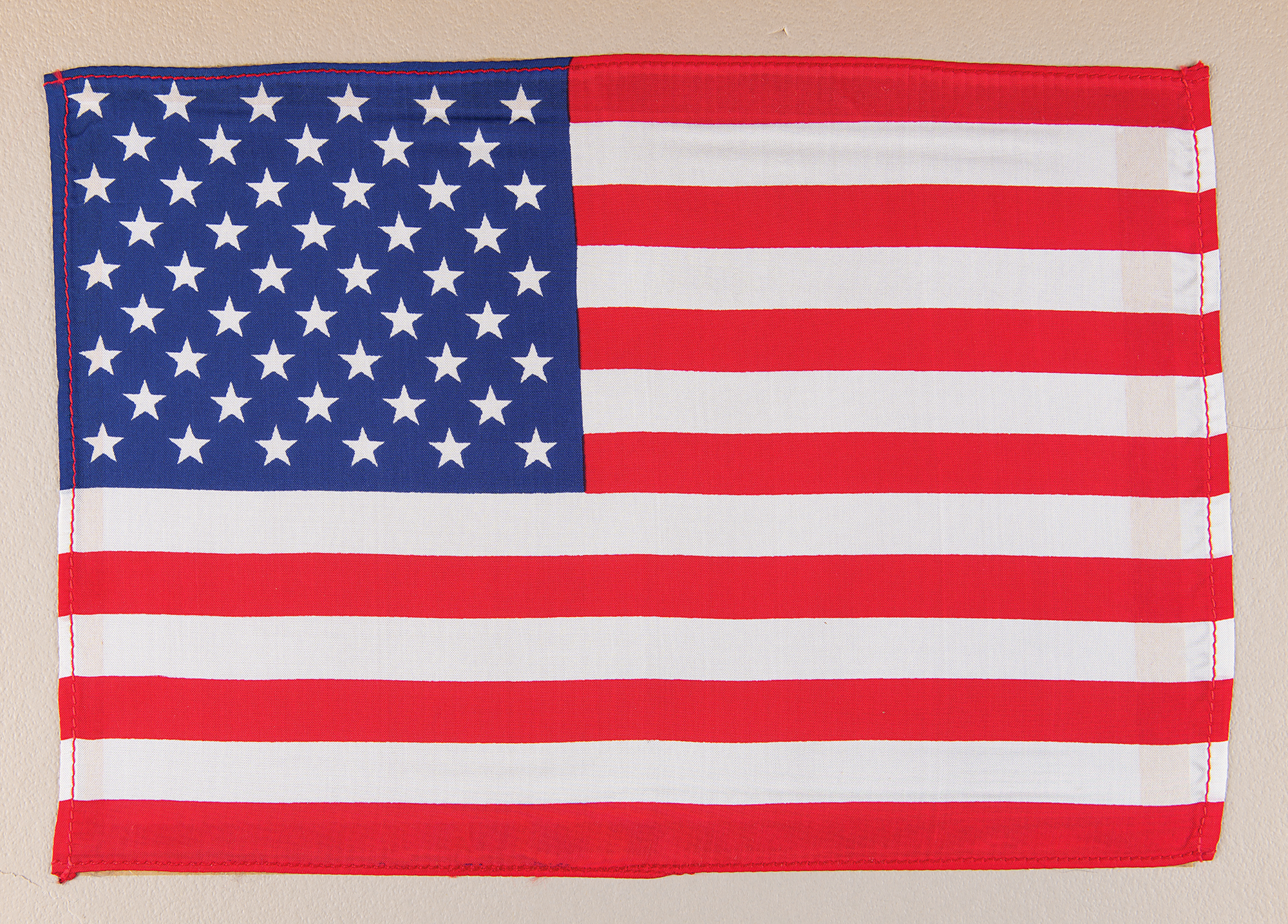 Fantastic mid-size American flag carried to the lunar surface on Apollo 12, 11.5 x 8, affixed to a 14 x 18 presentation mat, signed on the mount in ink by the entire crew, "Charles Conrad, Jr.," "Dick Gordon," and "Alan Bean." Affixed below is a caption, "Sailed with Yankee Clipper and Intrepid to the Ocean of Storms, November 1969." Inset within the mat is a 4˝ 'quarantine' crew patch, as worn on the crew's flight suits within the Mobile Quarantine Facility. In very good to fine condition, with a prominent split to the surface of the mount (not breaking through), affecting neither the artifacts nor the signatures. Accompanied by a letter of provenance signed by CMP Richard Gordon, in part: "This American flag flew with Conrad, Gordon, and Bean aboard Apollo XII - Yankee Clipper, making the final descent to the Lunar Surface, Ocean of Storms, aboard Intrepid, November 14–24, 1969. It is from my personal collection."