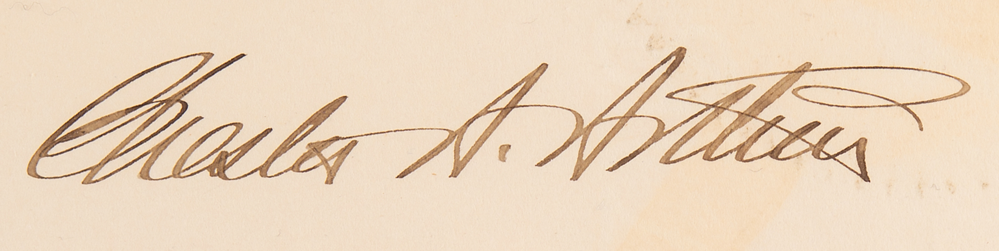 Partly-printed DS as president, one page, 17 x 14, November 11, 1883. President Arthur appoints David Casterline as "Postmaster at Hammondsport, in the County of Steuben, State of New York." Nicely signed at the conclusion in ink by President Chester A. Arthur and countersigned by Postmaster General Frank Hatton. The gold foil seal and red ribbon affixed at the lower left remain intact. In fine condition, with light offset toning from the ribbon.