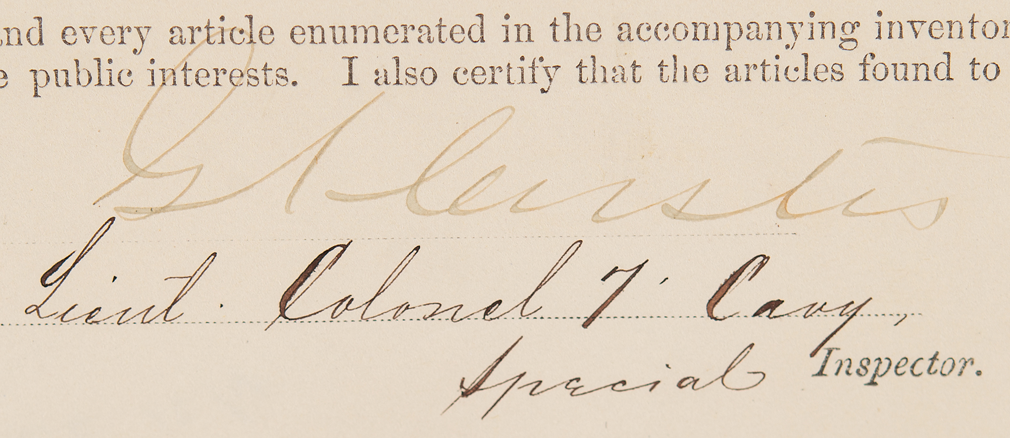 George A. Custer and Thomas W. Custer Document Signed - 7th Cavalry Inventory Report at Fort Abraham Lincoln