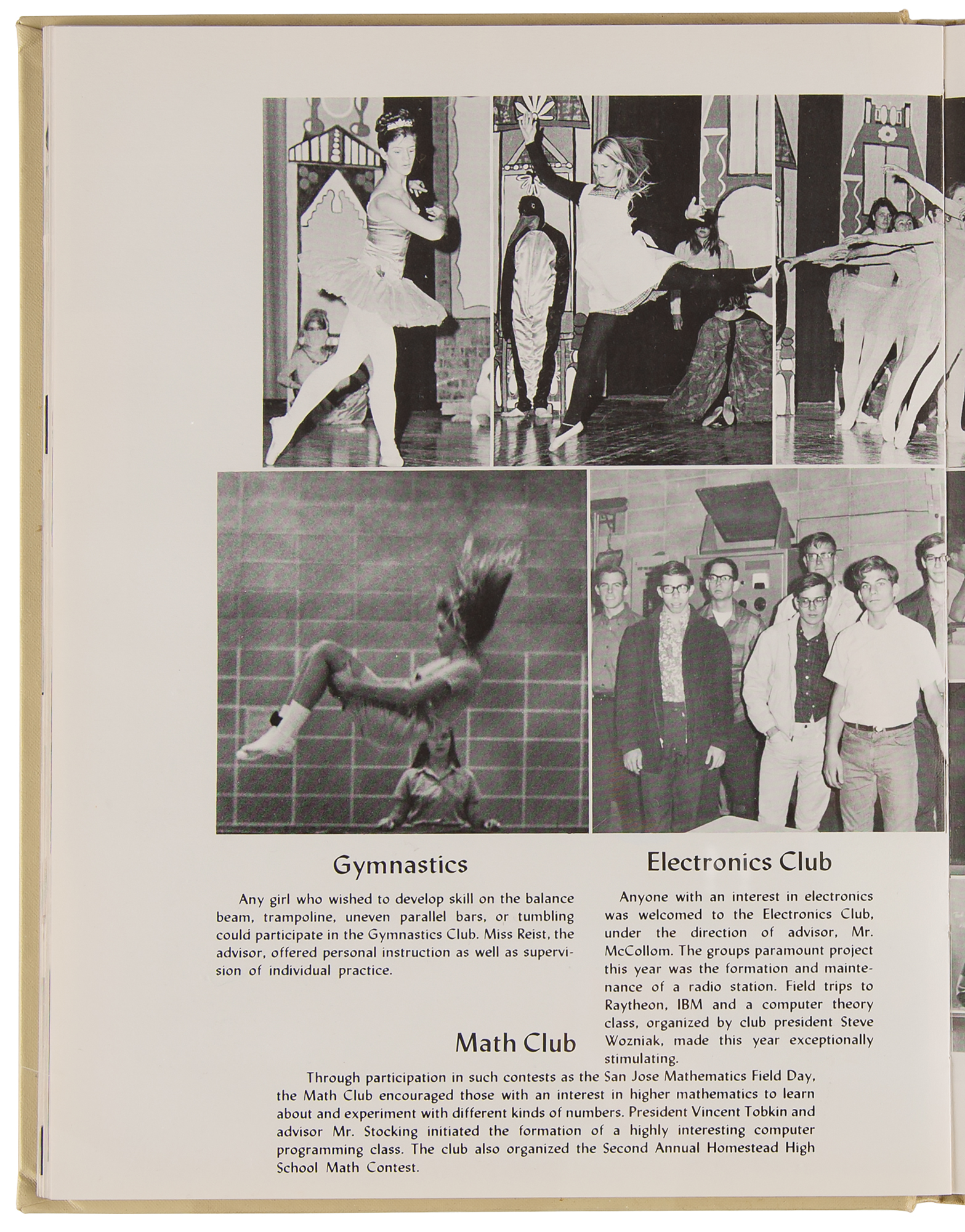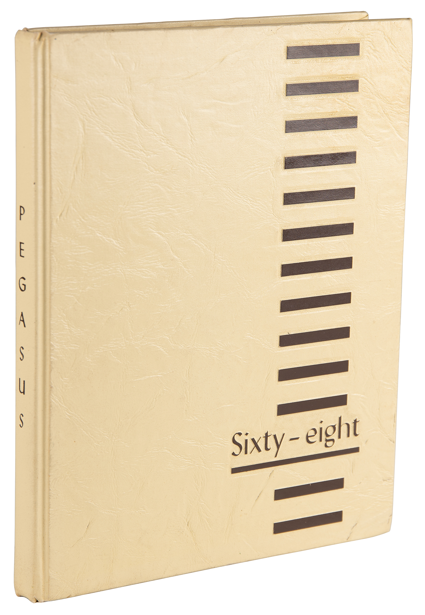 Hardcover 1968 Pegasus yearbook from Steve Wozniak's senior year at Homestead High School in Cupertino, California, 8.75 x 11.25, 200 pages. Wozniak is pictured as a member of the graduating senior class and as president of the electronics club on page 58; his sister, Leslie Wozniak, is depicted as a member of the junior class.