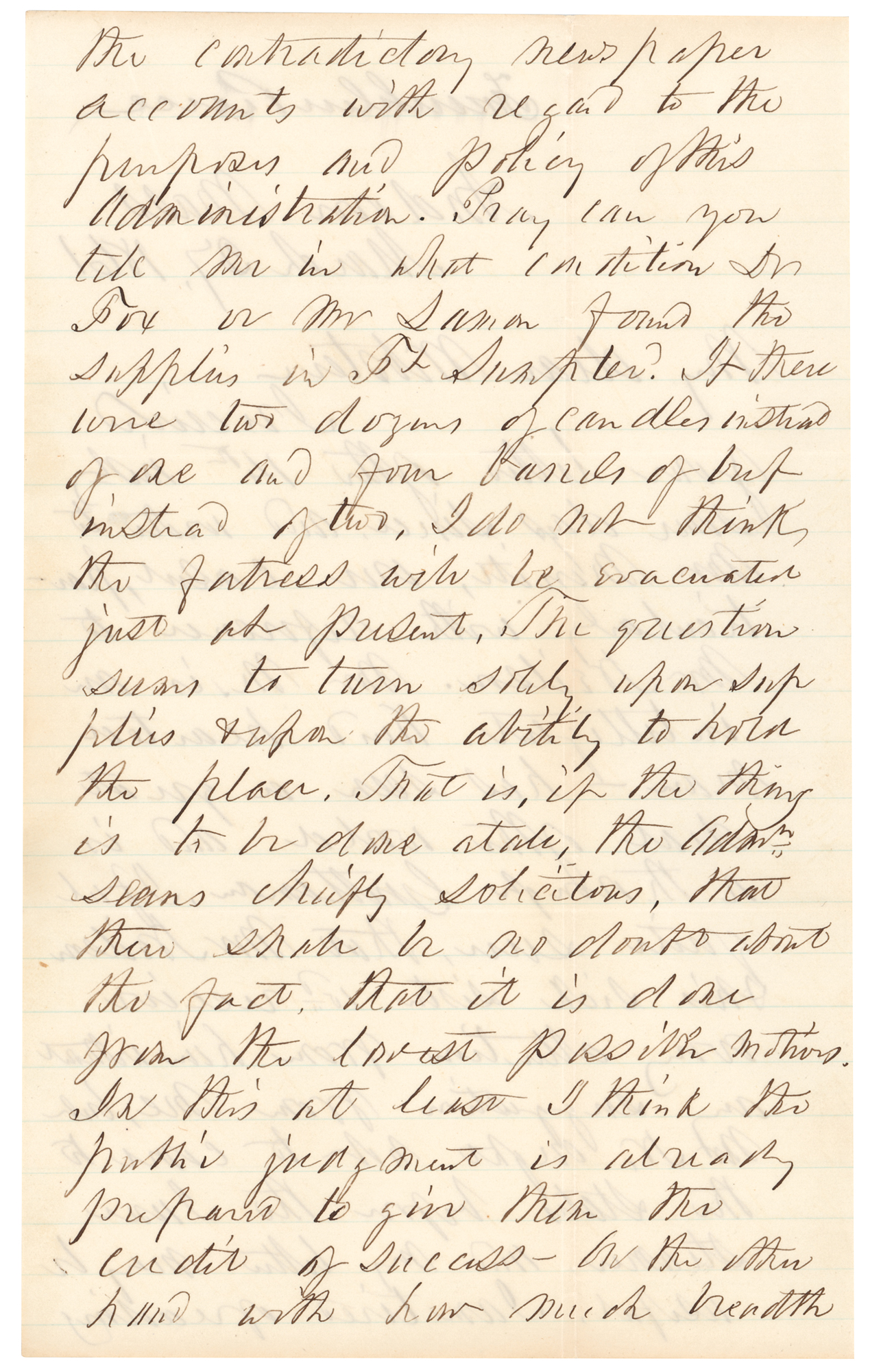Shortly after leaving the White House in 1857, Pierce returned to his native New Hampshire and then embarked on a three-year tour of Europe and the Bahamas. During his time abroad Pierce maintained correspondence with Webster, the son-in-law of Senator Hamilton Fish and a brilliant Manhattan lawyer who, in 1892, published Franklin Pierce and His Administration. The election of Abraham Lincoln as the “Republican Executive” compelled South Carolina to secede from the Union on December 20, 1860, a decision that placed the still-under-construction Union garrison of Fort Sumter directly within enemy territory. Confederate demands to surrender the fort were ignored and President Buchanan’s attempts to transport troops and provisions to the Charleston sea fort were repulsed on January 9, 1861, when cadets from the Citadel fired upon the merchant steamer Star of the West. The resupply of Fort Sumter became the first major crisis for President Lincoln, and three months later, on April 12, the fortress served as the site of the first battle of the Civil War. Handwritten letters by Pierce remain scarce and highly sought-after, with this example all the more remarkable given Pierce’s commentary on a pivotal event that led to the outbreak of the Civil War just sixteen days later.