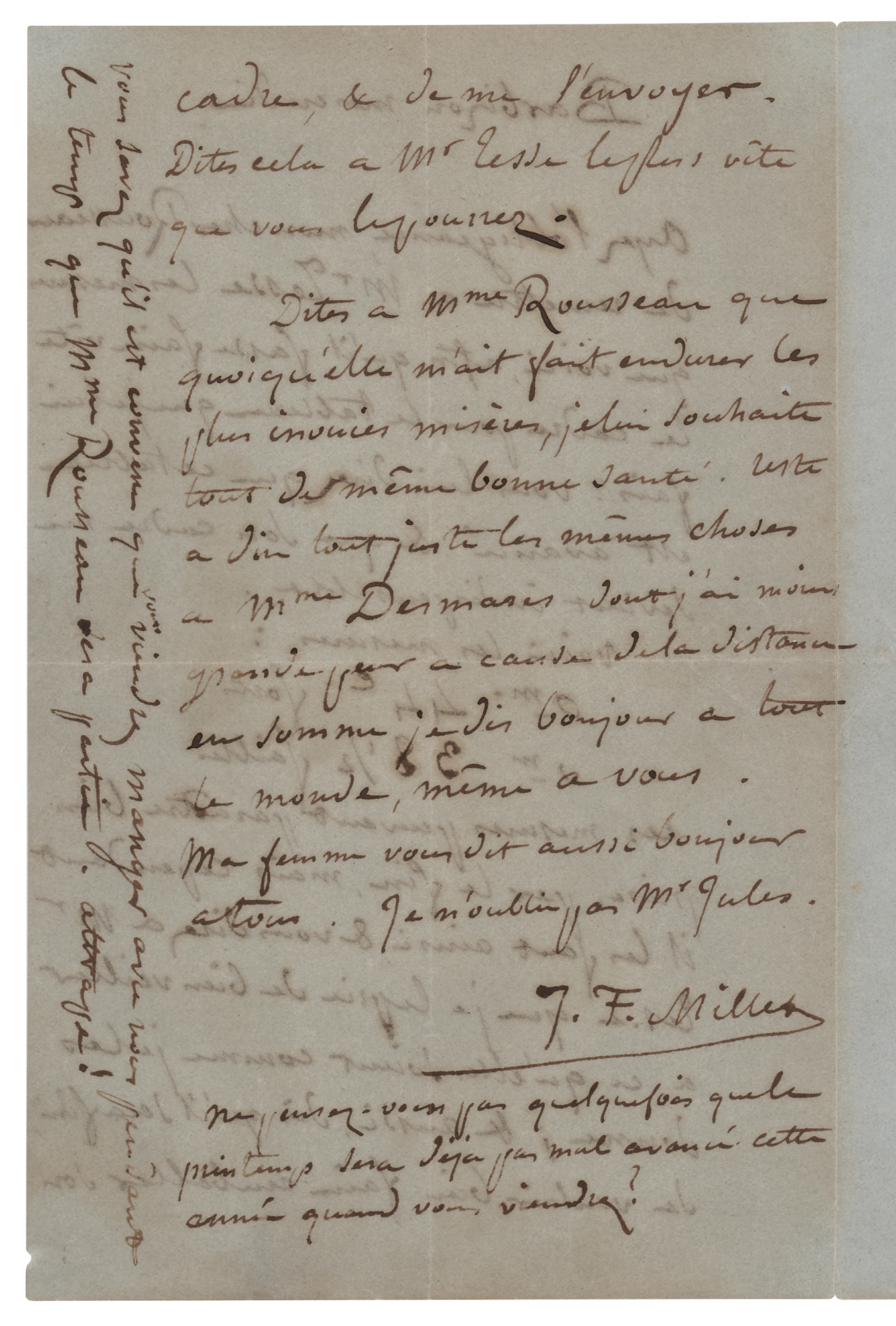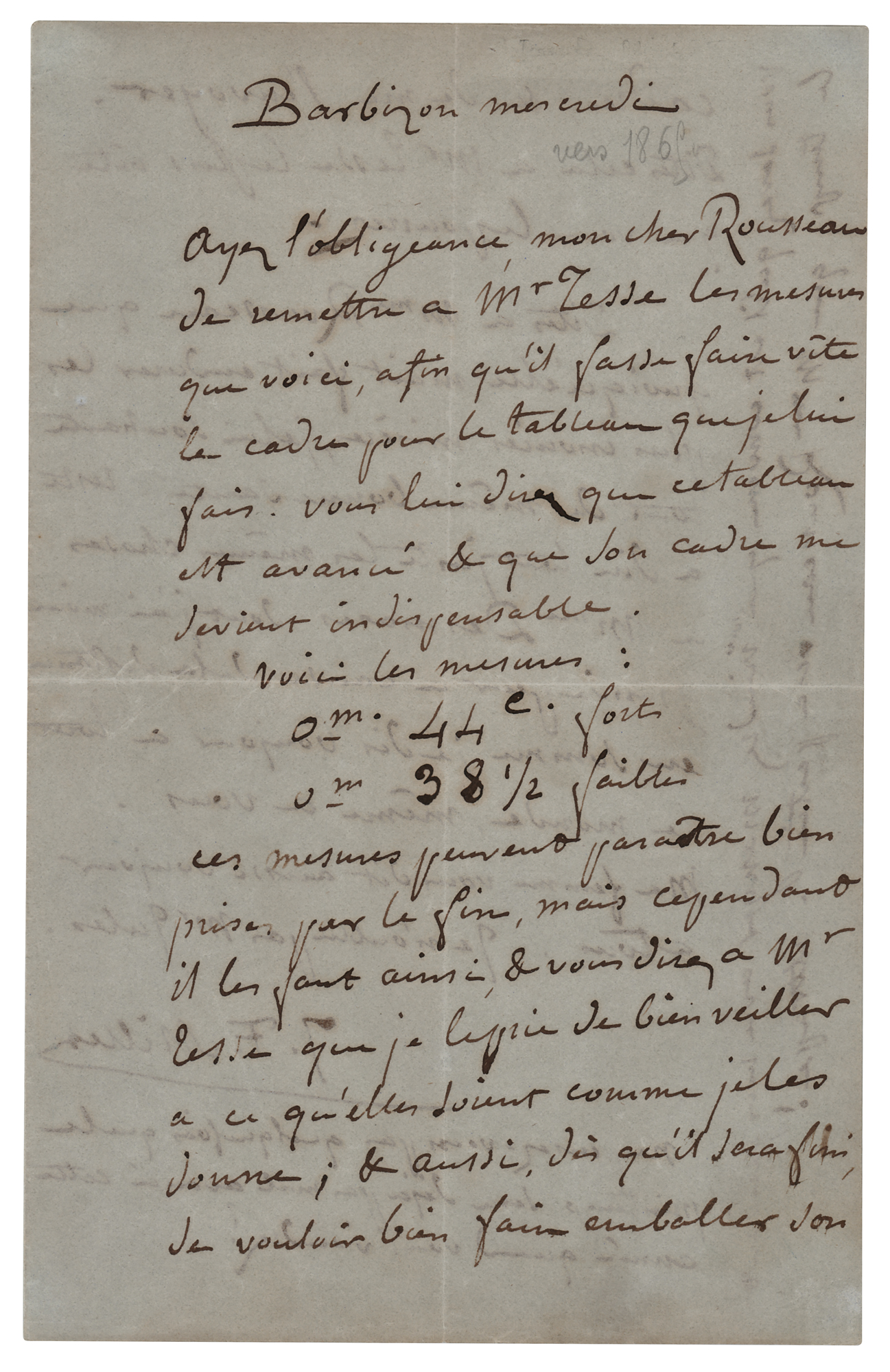 Jean-Francois Millet Autograph Letter Signed to Barbizon Painter Theodore Rousseau