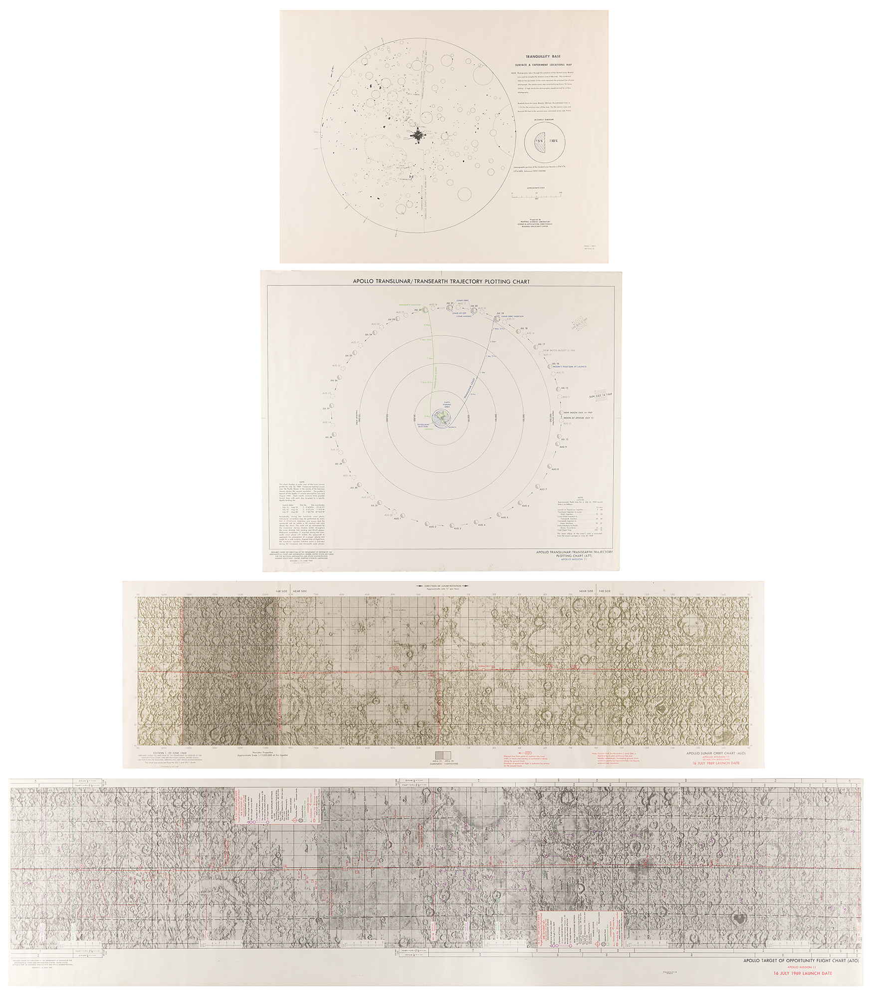 All are rolled in overall fine condition, with vertical folds to the Lunar Orbit Chart, and wear to bottom edge of the ATT chart.