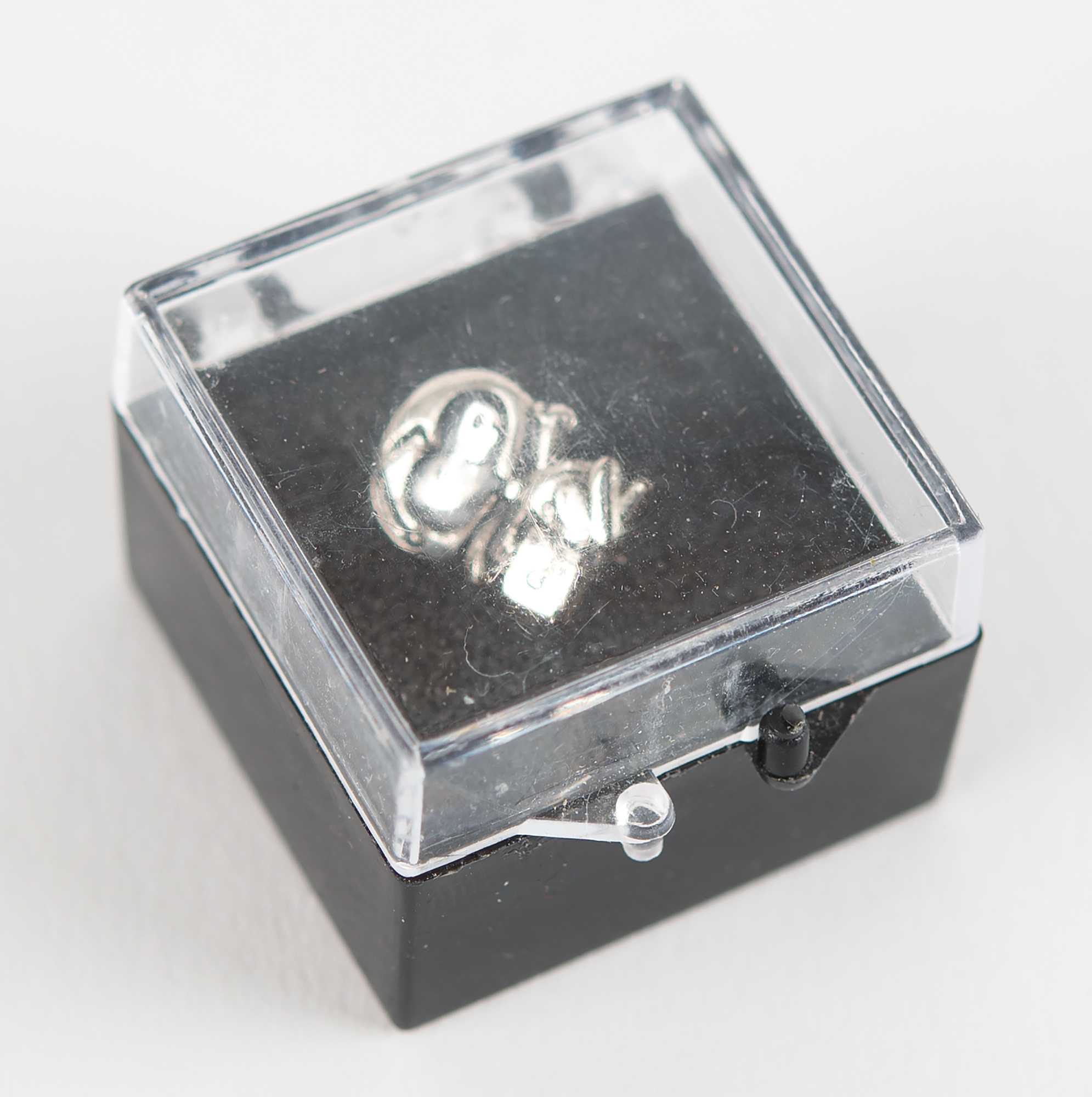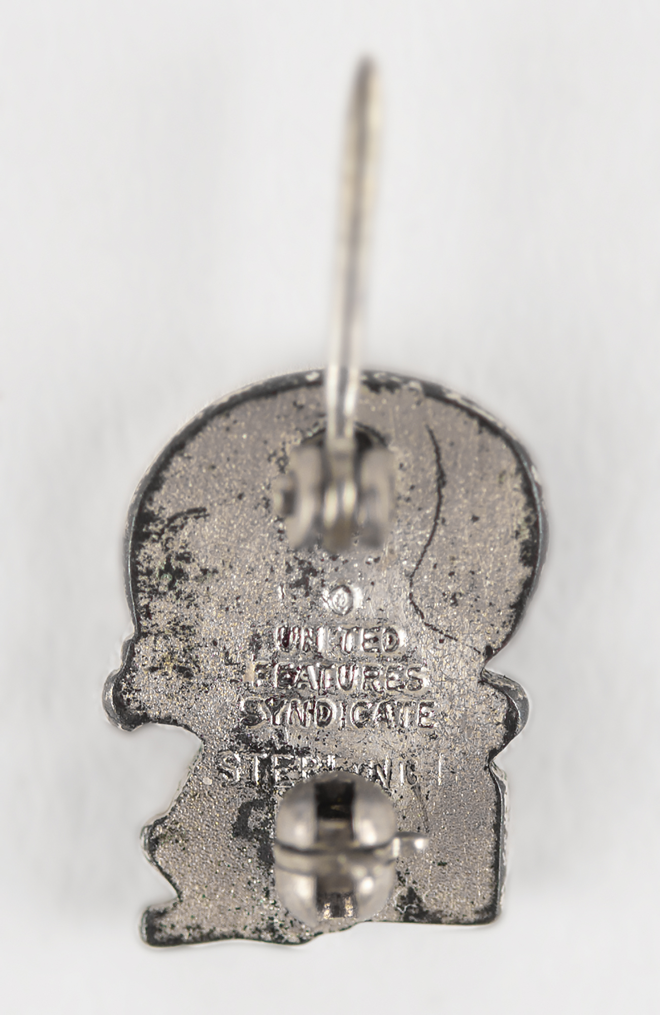 Sterling ‘Silver Snoopy’ lapel pin, approximately .5˝ tall, with the reverse bearing raised text, “United Features Syndicate,” and a safety pin back. Includes its original plastic case. In fine condition.
