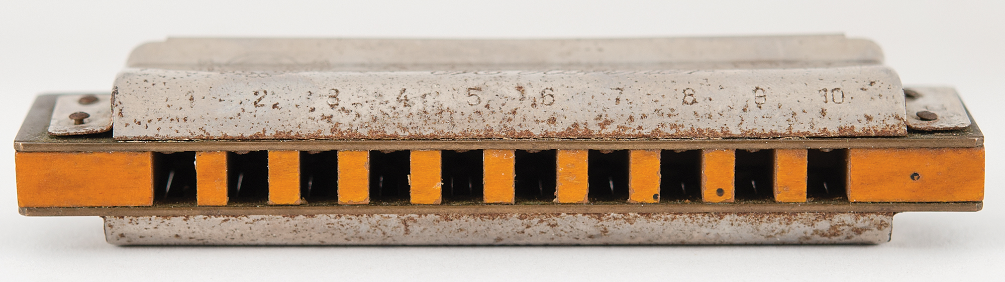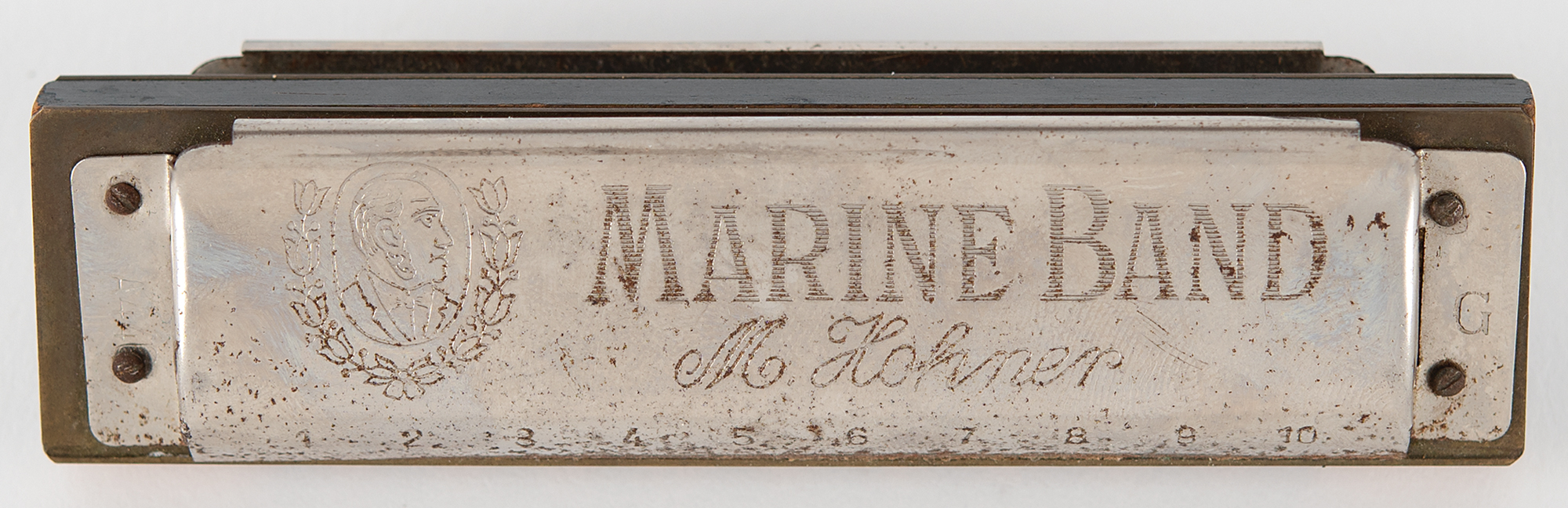 Bob Dylan's stage-used Hohner Marine Band harmonica, key of G, tuned to A446, from the European leg of Dylan's 1966 world tour with his electric backing band The Hawks (later The Band): Robbie Robertson, Rick Danko, Richard Manuel, Garth Hudson, and Sandy Konikoff/Mickey Jones on drums.